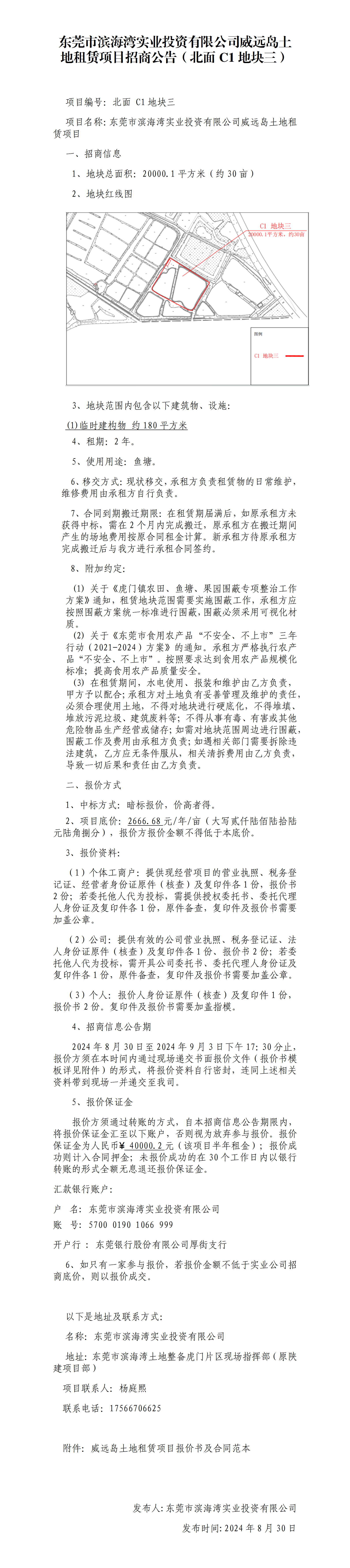 東莞市濱海灣實業(yè)投資有限公司威遠(yuǎn)島土地租賃項目招商公告(北面C1地塊三)