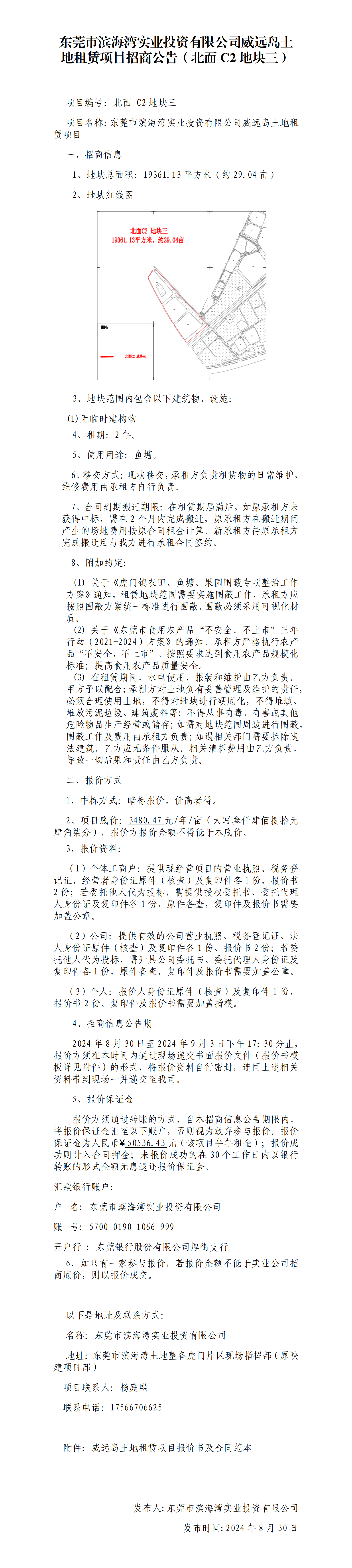 東莞市濱海灣實業(yè)投資有限公司威遠(yuǎn)島土地租賃項目招商公告(北面C2地塊三)