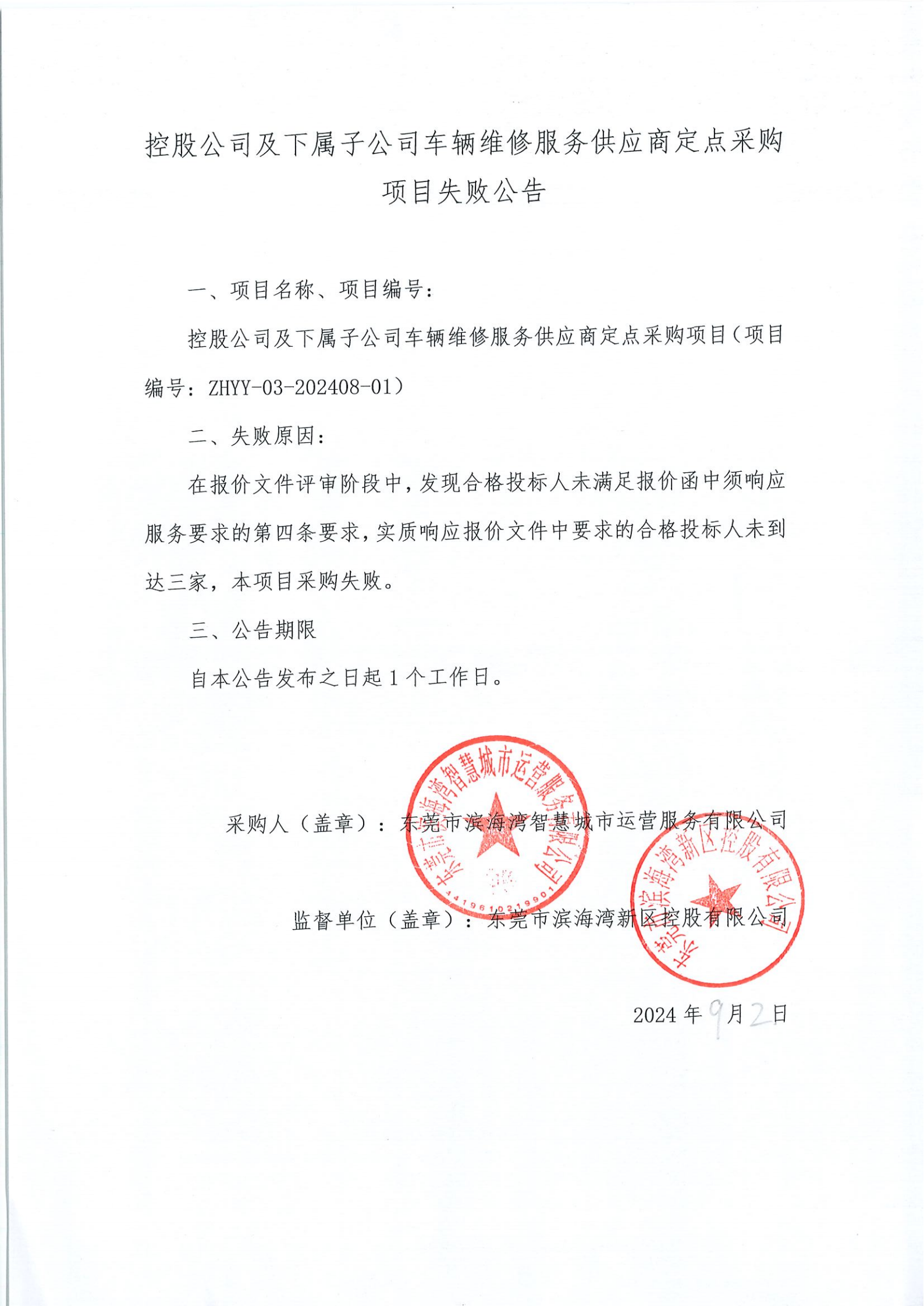 控股公司及下屬子公司車輛維修服務(wù)供應(yīng)商定點采購項目失敗公告