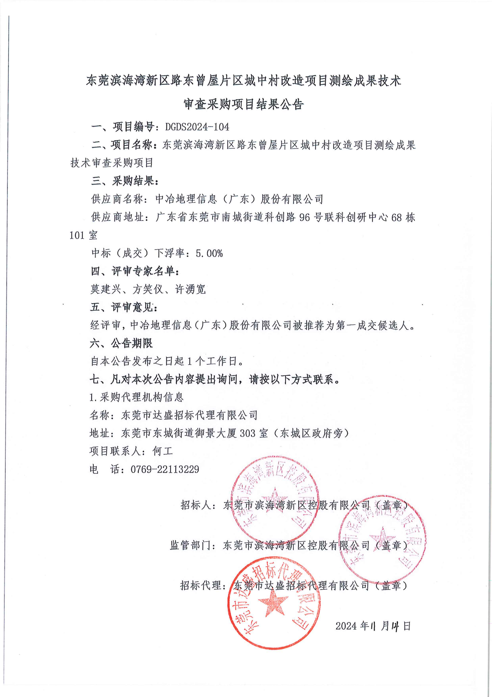 東莞濱海灣新區(qū)路東曾屋片區(qū)城中村改造項(xiàng)目測繪成果技術(shù)審查采購項(xiàng)目結(jié)果公告