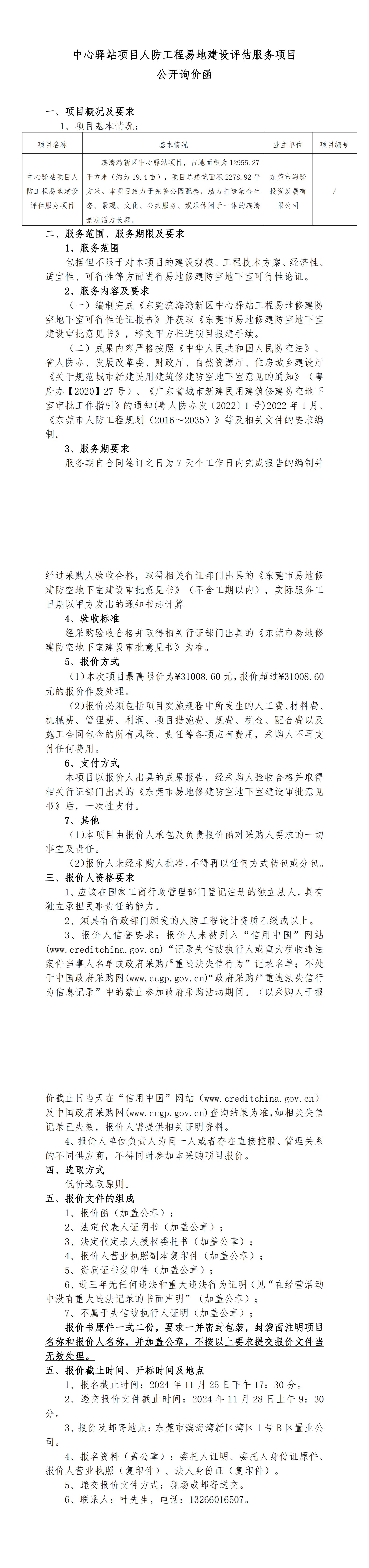 附件:中心驛站項目人防工程易地建設(shè)評估服務項目公開詢價函
