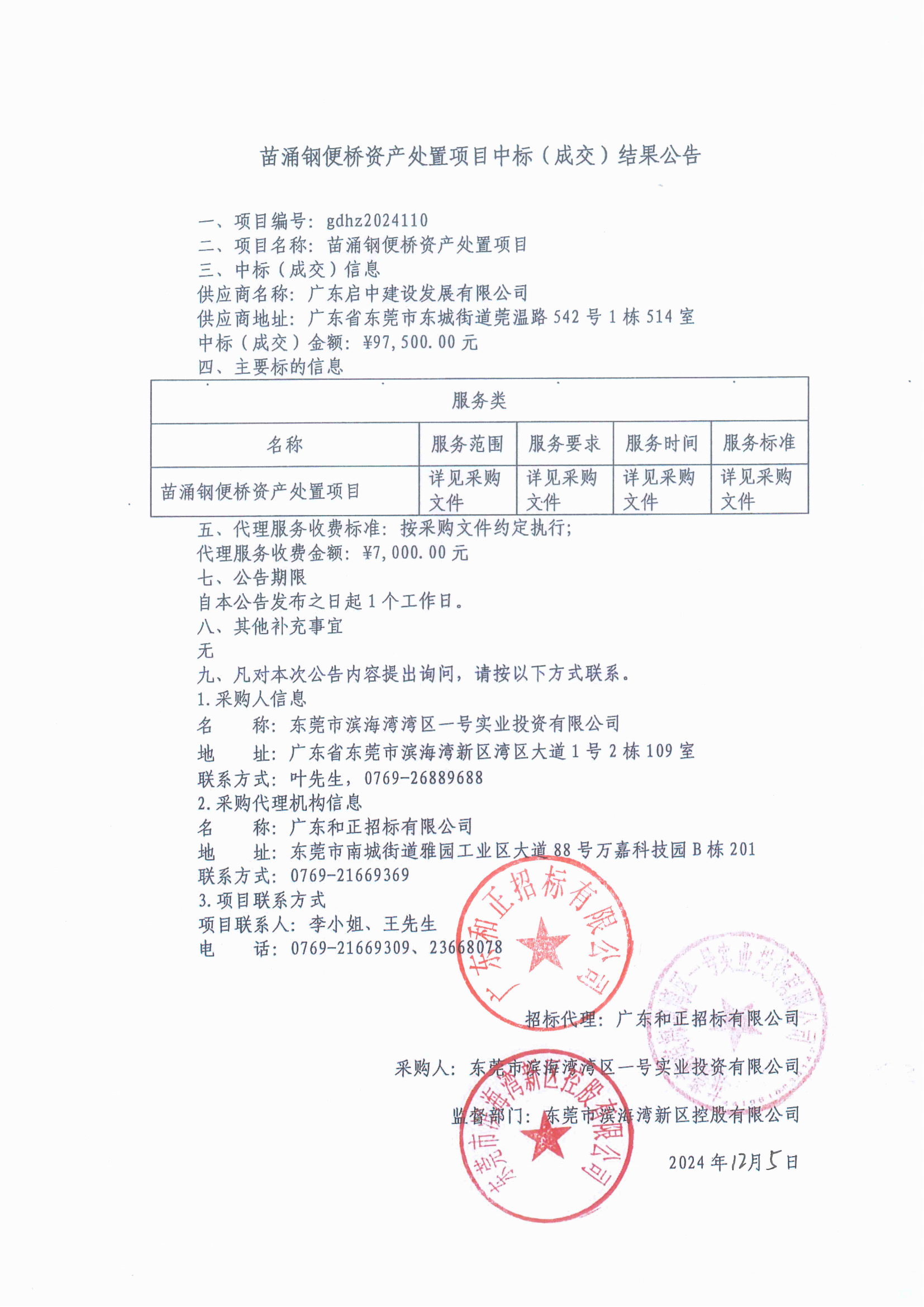苗涌鋼便橋資產(chǎn)處置項(xiàng)目中標(biāo)(成交)結(jié)果公告