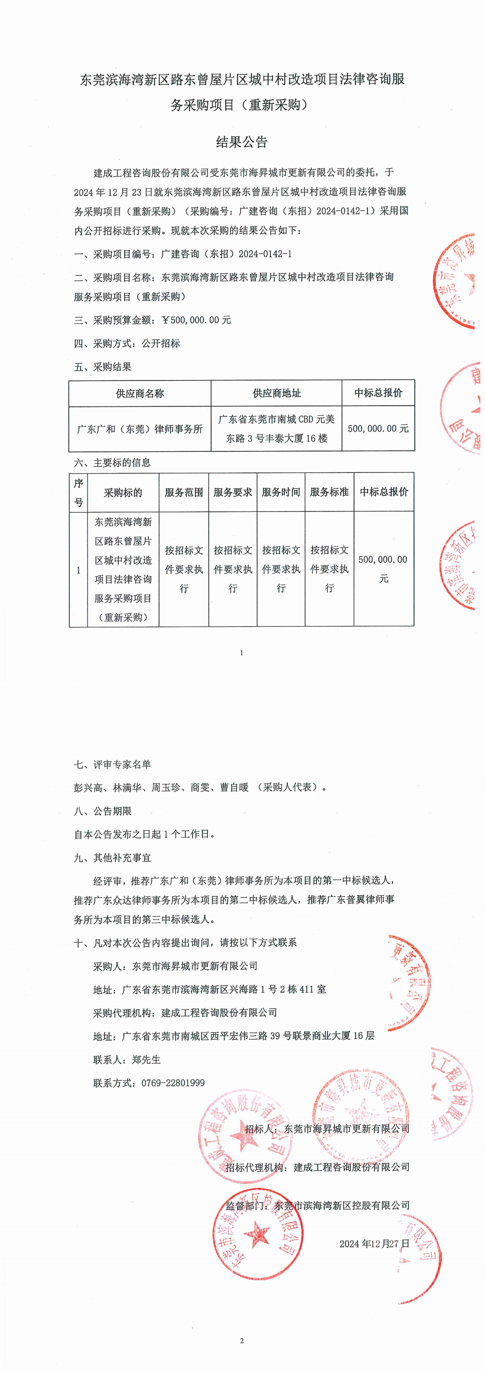 東莞濱海灣新區(qū)路東曾屋片區(qū)城中村改造項(xiàng)目法律咨詢服務(wù)采購項(xiàng)目(重新采購)結(jié)果公告