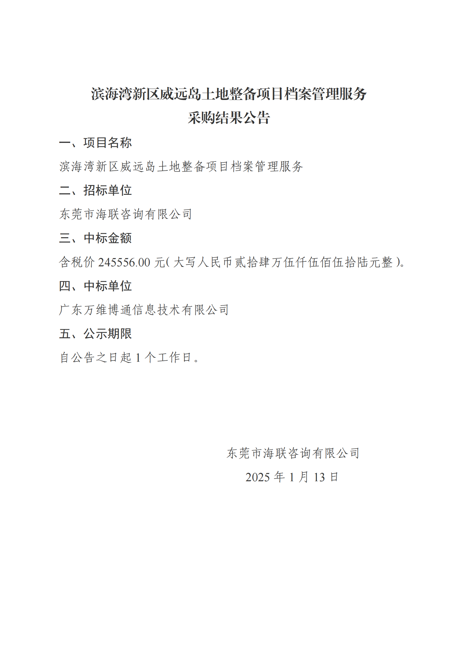 濱海灣新區(qū)威遠(yuǎn)島土地整備項(xiàng)目檔案管理服務(wù)采購(gòu)結(jié)果公告