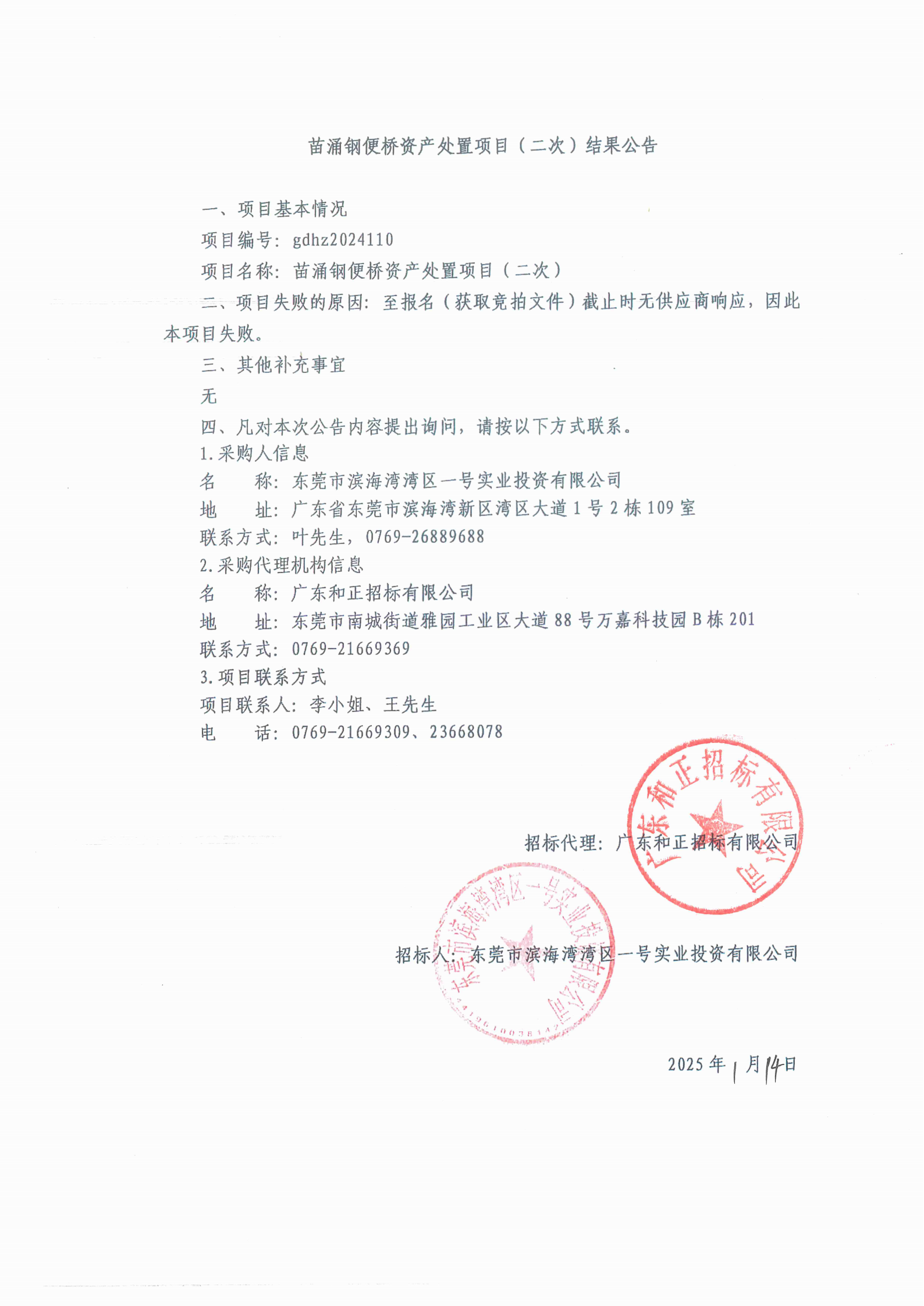 苗涌鋼便橋資產(chǎn)處置項(xiàng)目(二次)結(jié)果公告