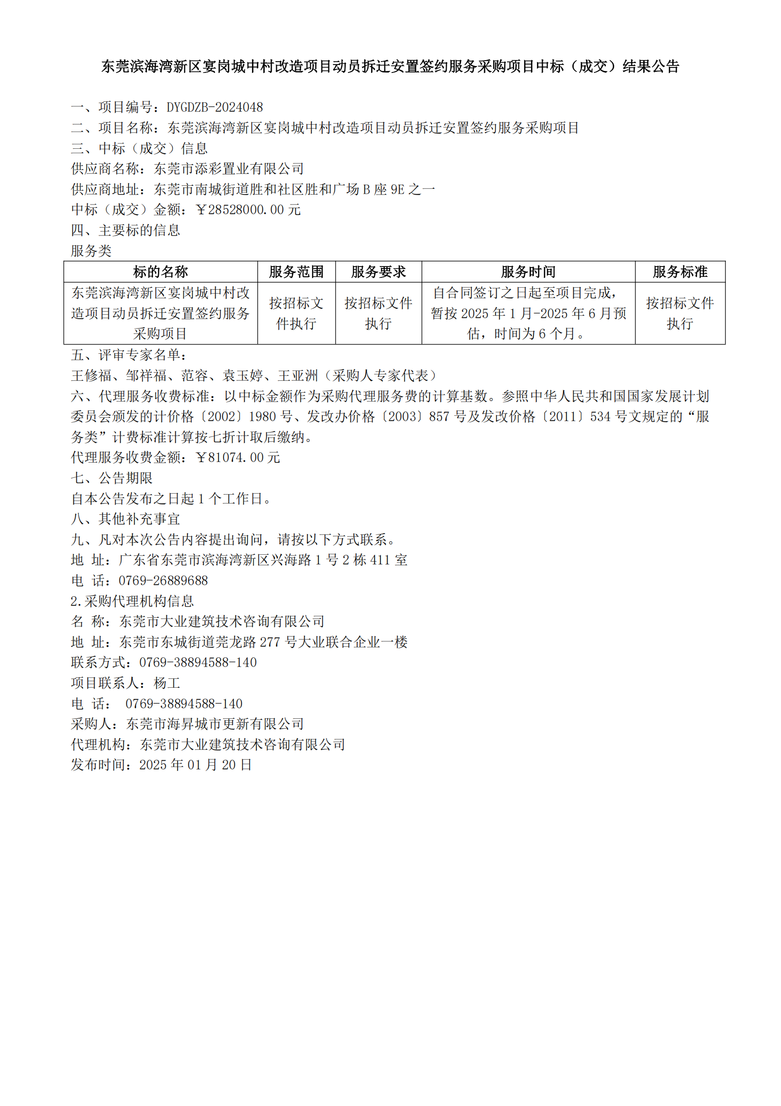 東莞濱海灣新區(qū)宴崗城中村改造項(xiàng)目動(dòng)員拆遷安置簽約服務(wù)采購項(xiàng)目中標(biāo)(成交)結(jié)果公告