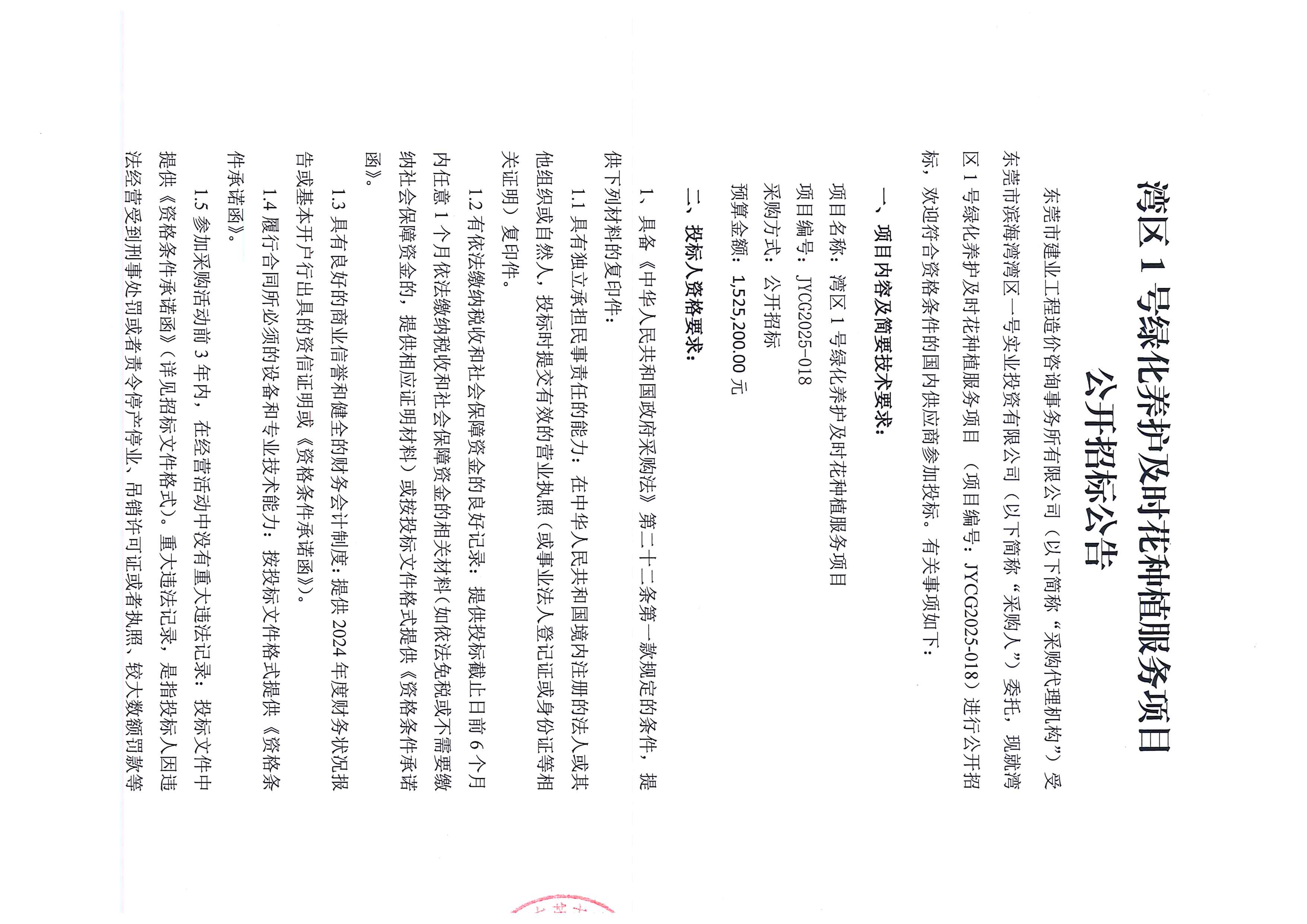 灣區(qū)1號(hào)綠化養(yǎng)護(hù)及時(shí)花種植服務(wù)項(xiàng)目公開(kāi)招標(biāo)公告
