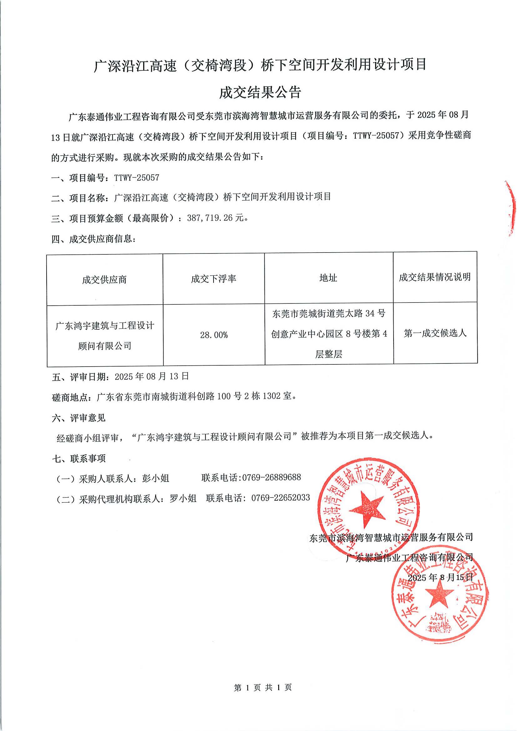 廣深沿江高速(交椅灣段)橋下空間開發(fā)利用設(shè)計(jì)項(xiàng)目成交結(jié)果公告