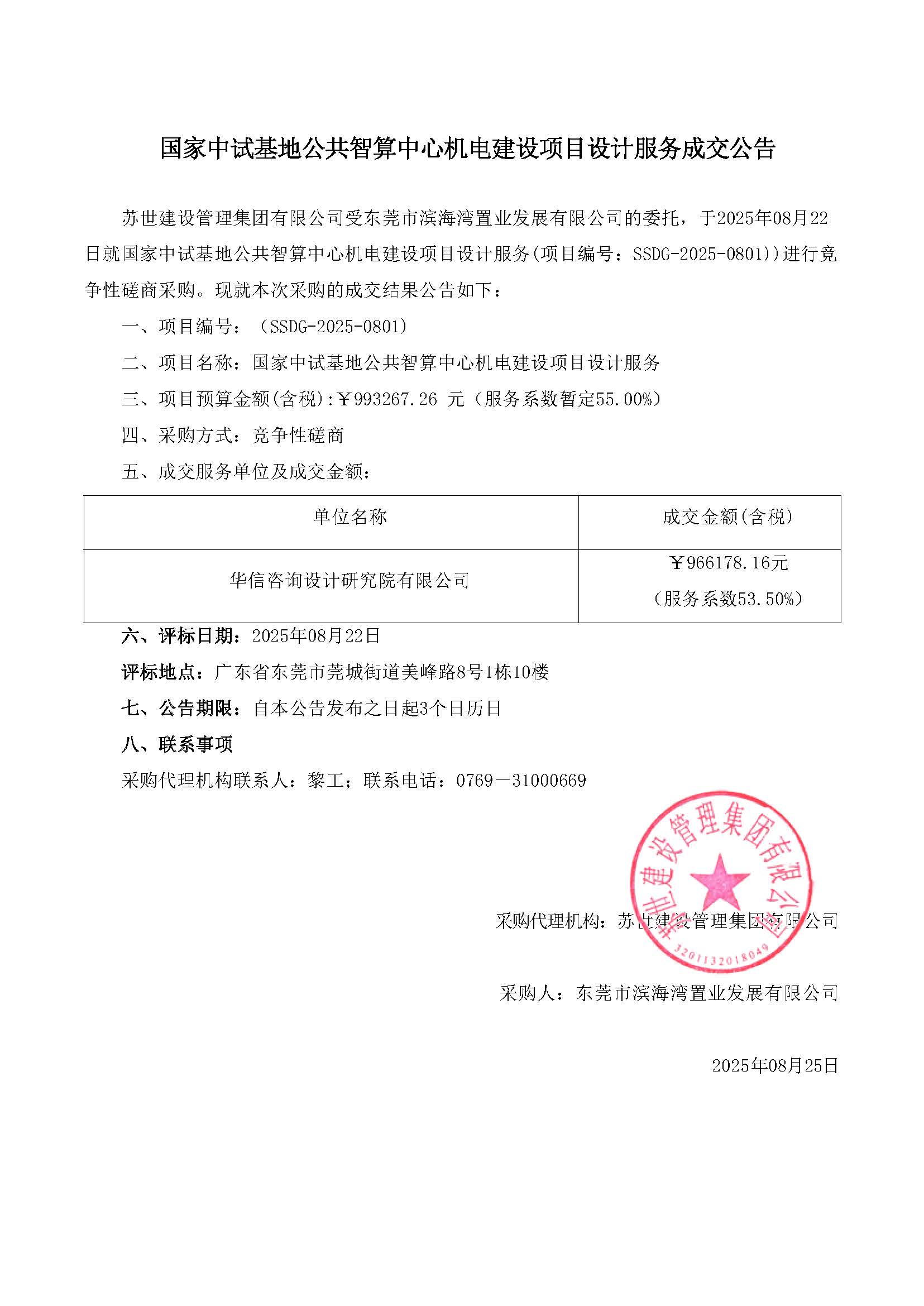 國家中試基地公共智算中心機電建設(shè)項目設(shè)計服務成交公告