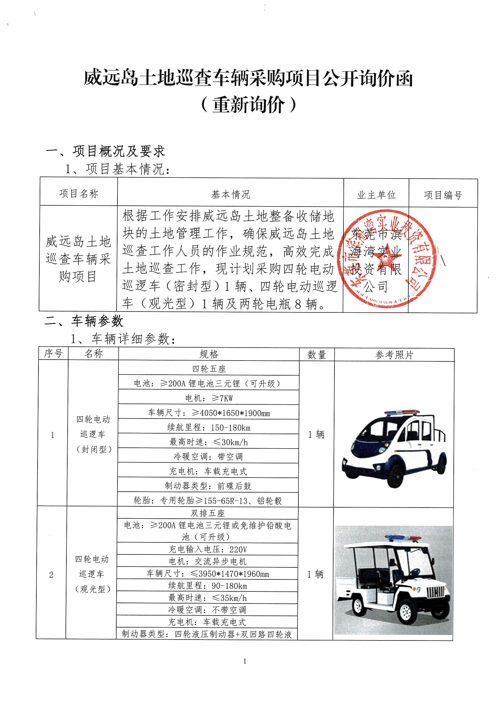 威遠島土地巡查車輛采購項目公開詢價函(重新詢價附件)