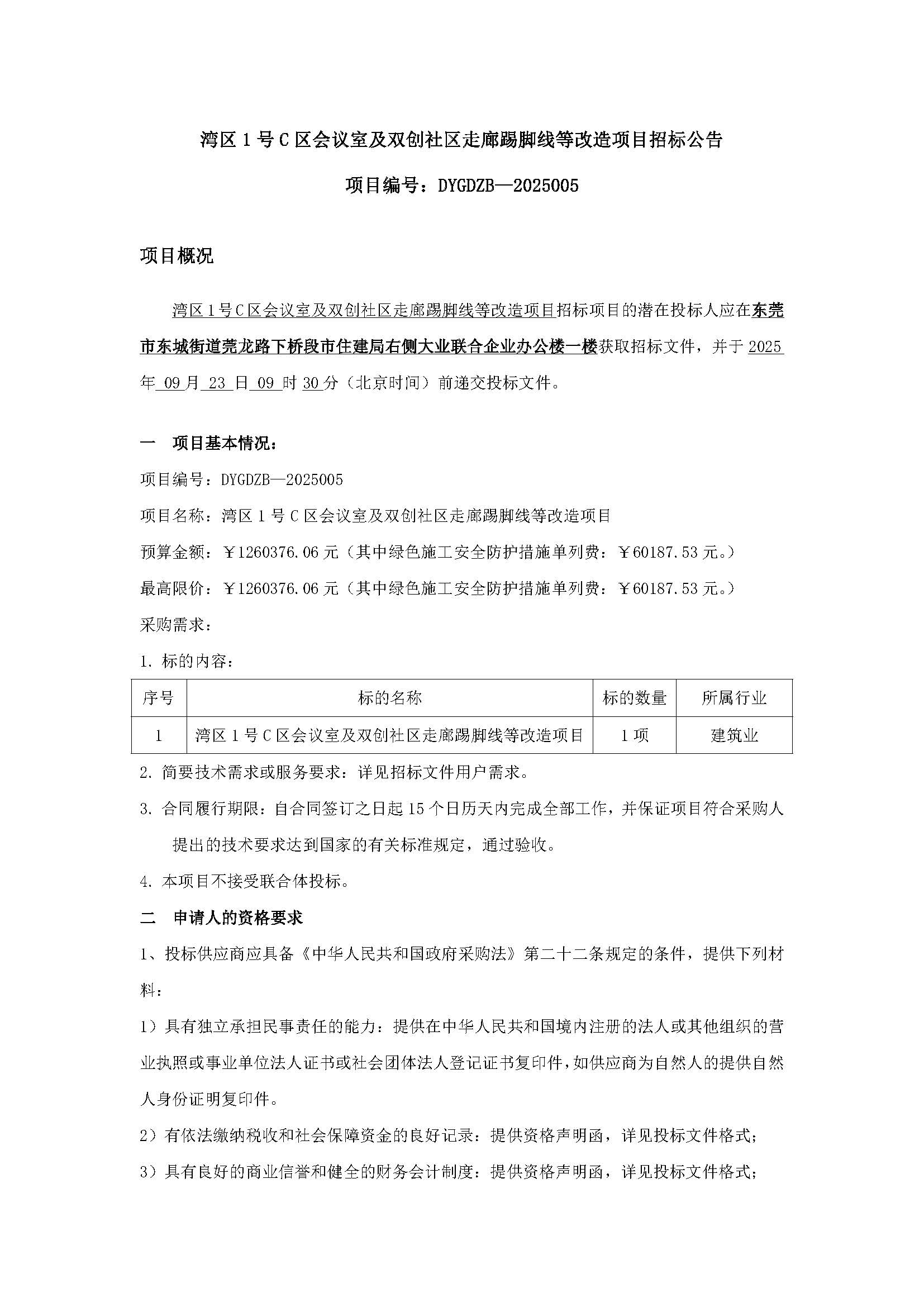 灣區(qū)1號(hào)C區(qū)會(huì)議室及雙創(chuàng)社區(qū)走廊踢腳線等改造項(xiàng)目招標(biāo)公告