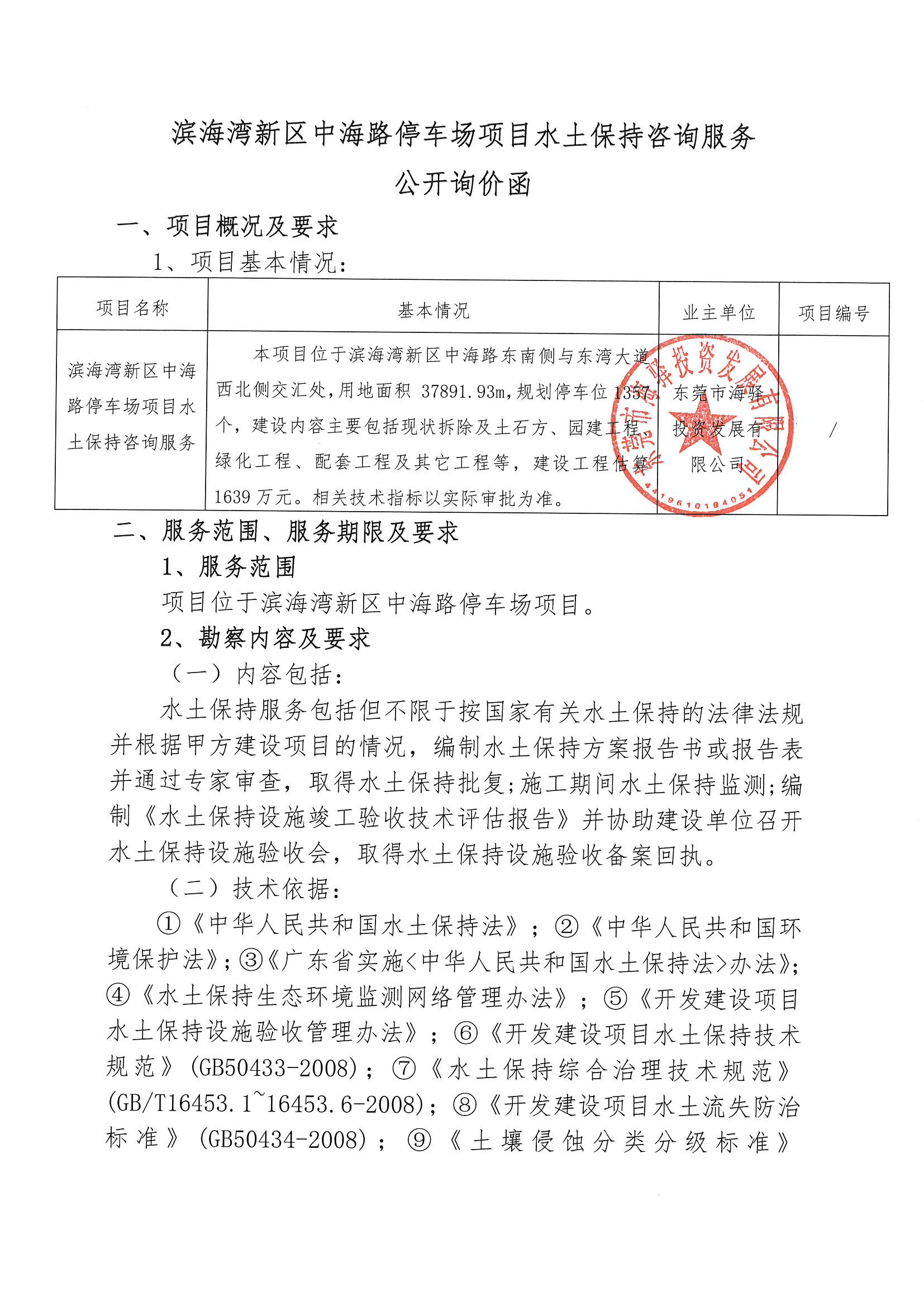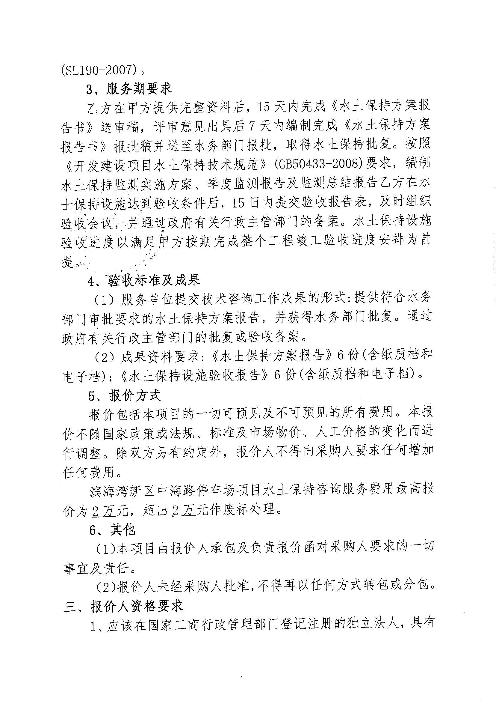 附件-濱海灣新區(qū)中海路停車場項目水土保持咨詢服務(wù)公開招詢價函