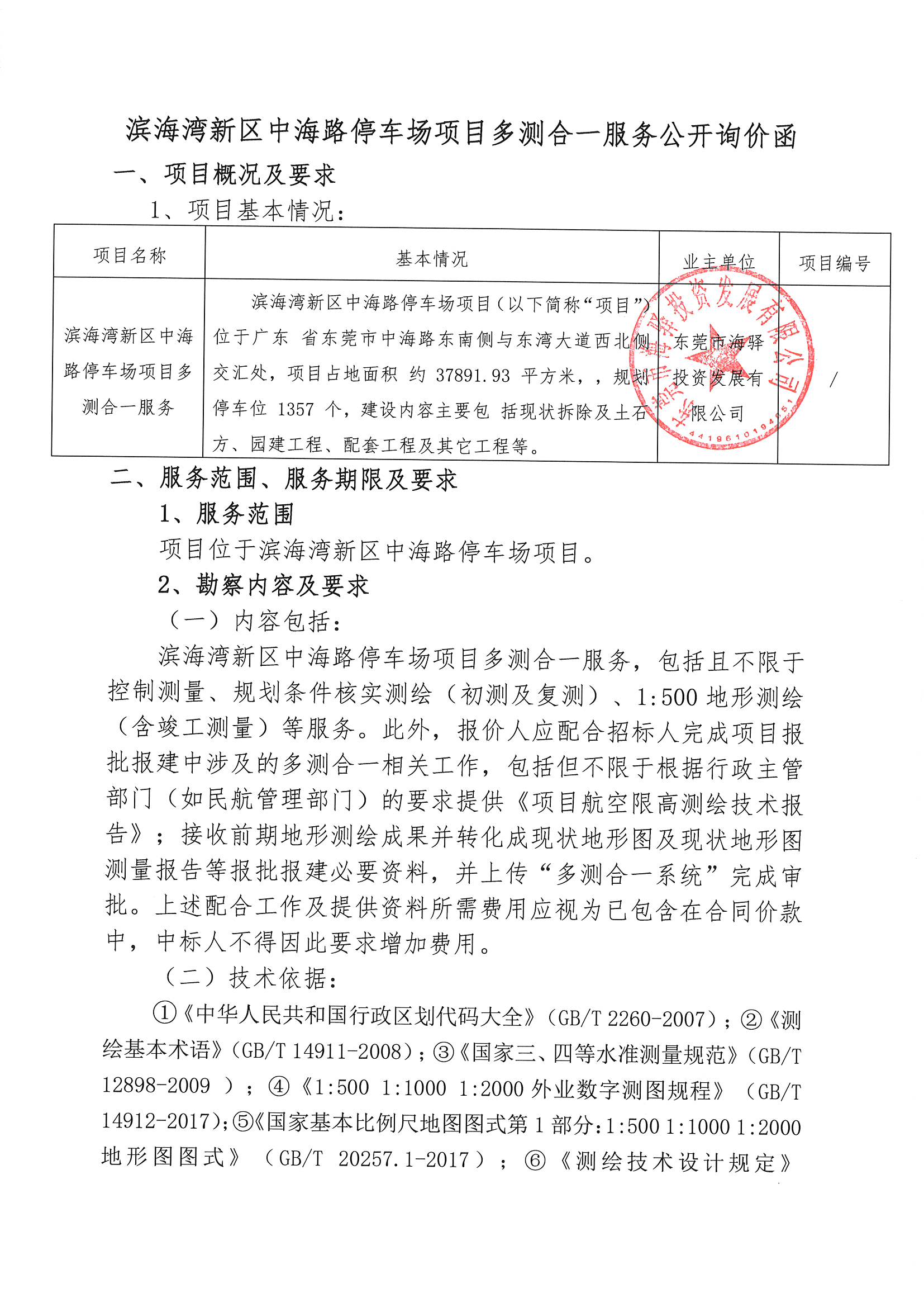 附件-濱海灣新區(qū)中海路停車場項目多測合一服務(wù)公開招詢價函