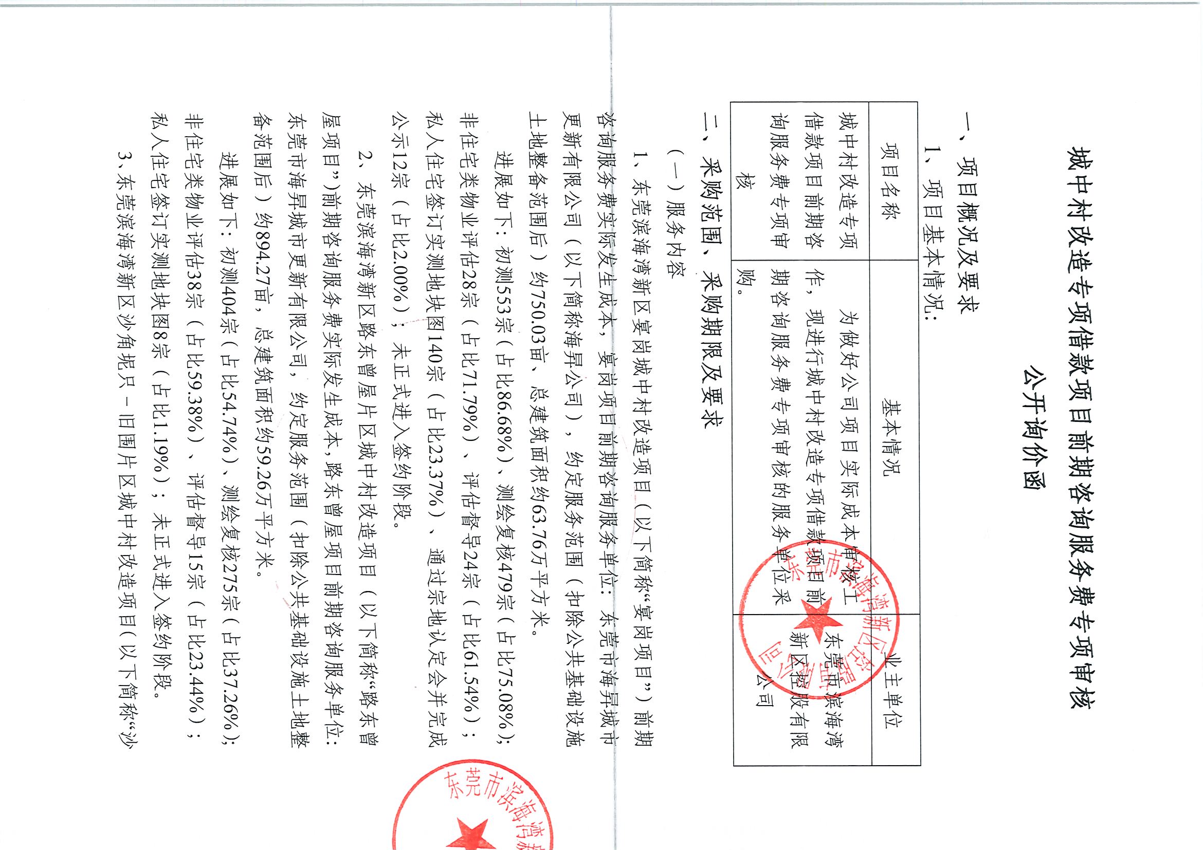 城中村改造專項(xiàng)借款項(xiàng)目前期咨詢服務(wù)費(fèi)專項(xiàng)審核公開詢價(jià)函