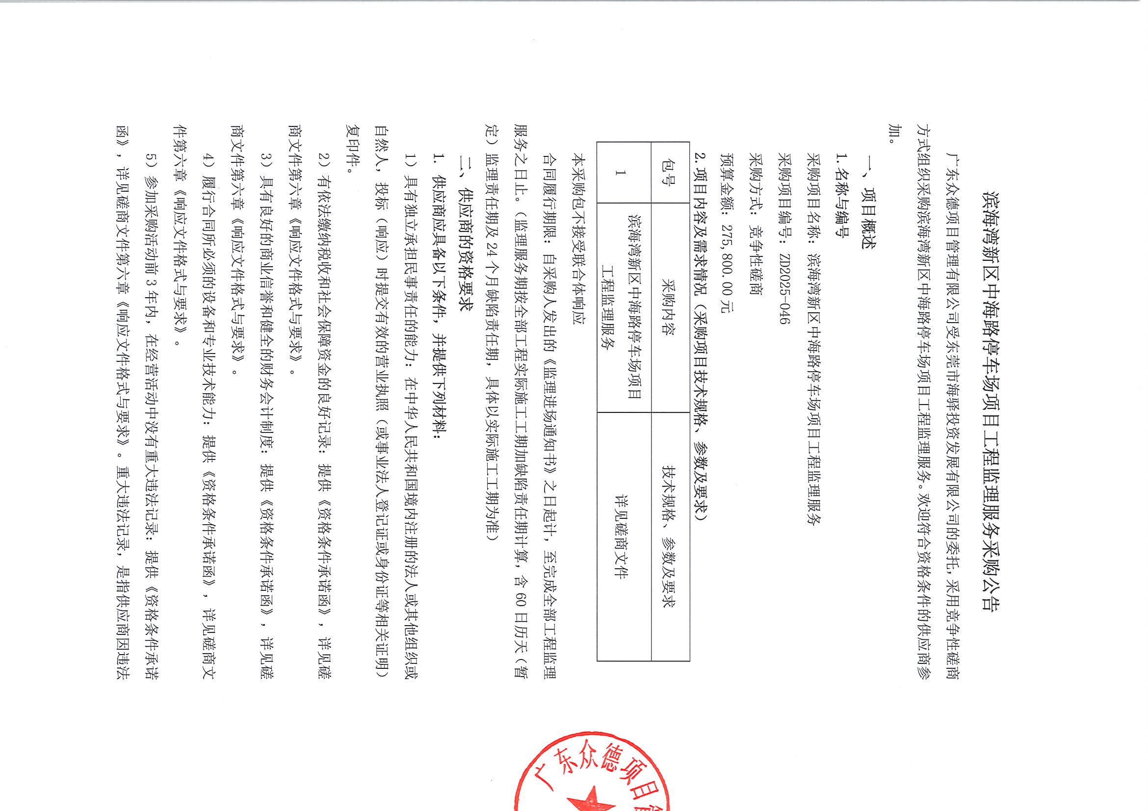 濱海灣新區(qū)中海路停車場項目工程監(jiān)理服務采購公告