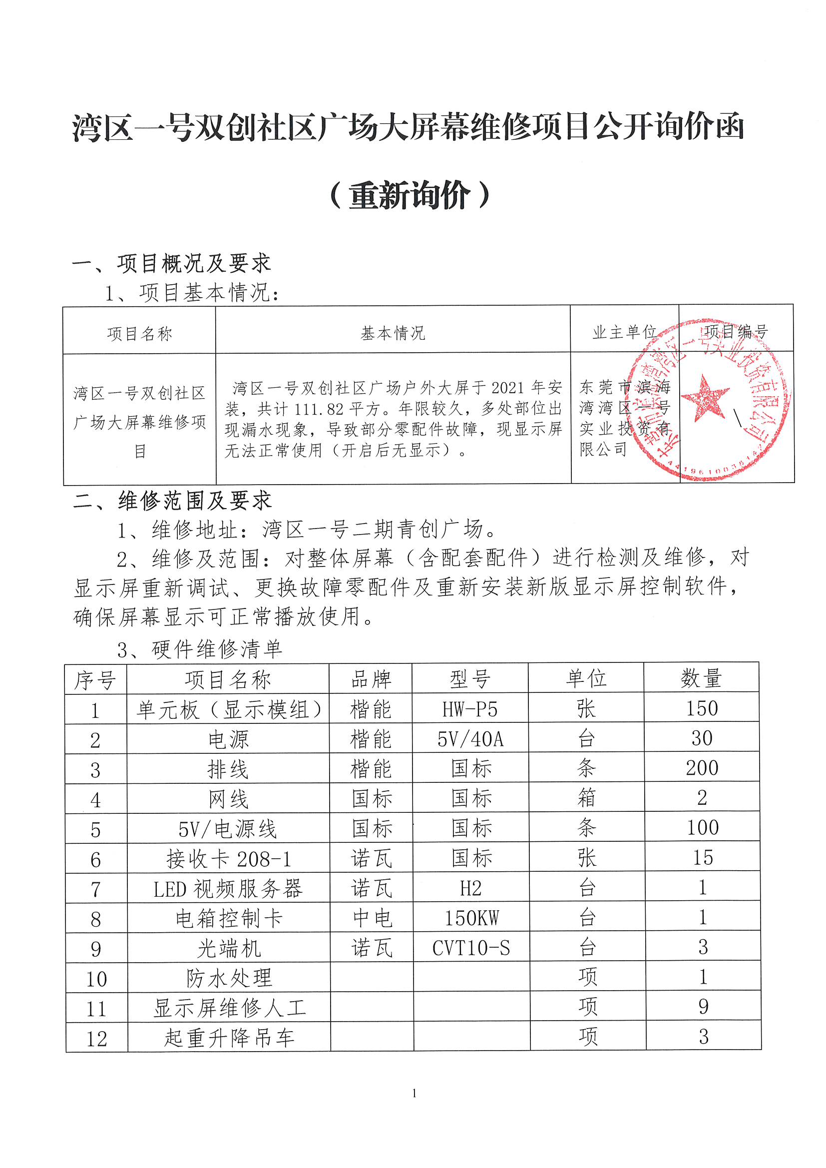 附件-灣區(qū)一號(hào)雙創(chuàng)社區(qū)廣場(chǎng)大屏幕維修項(xiàng)目公開詢價(jià)函(公開詢價(jià))