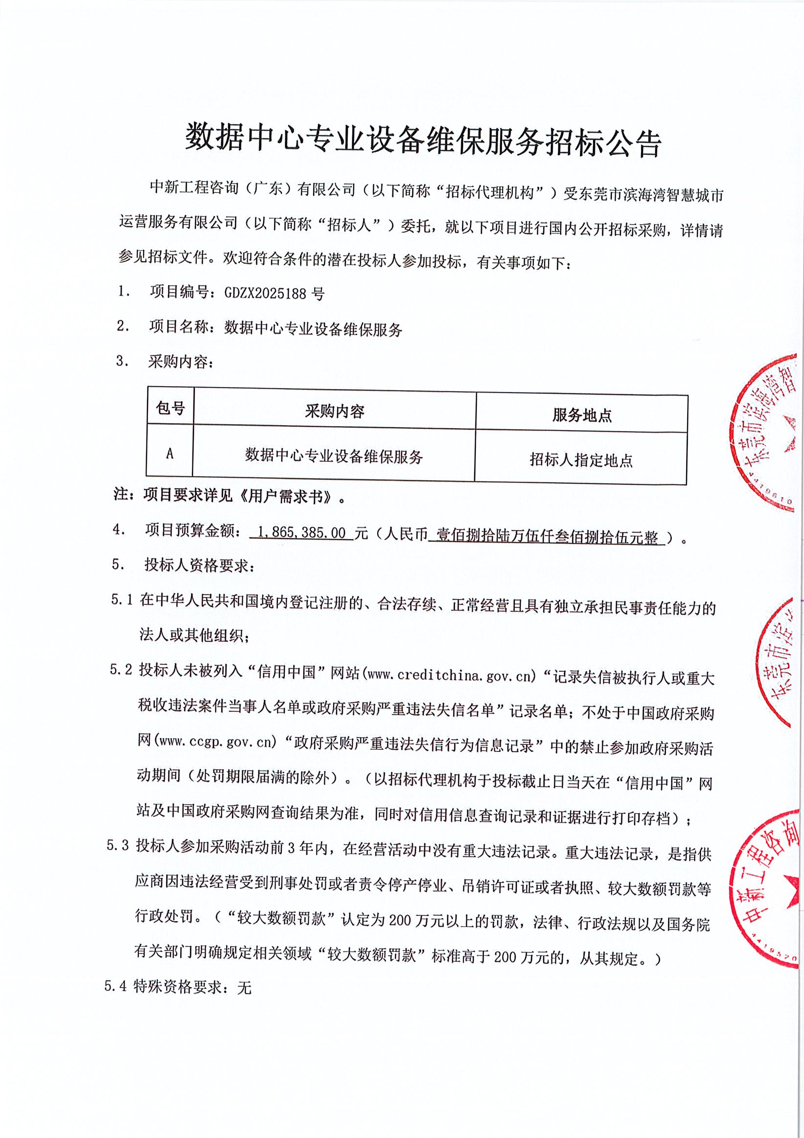 數(shù)據(jù)中心專業(yè)設(shè)備維保服務(wù)招標(biāo)公告
