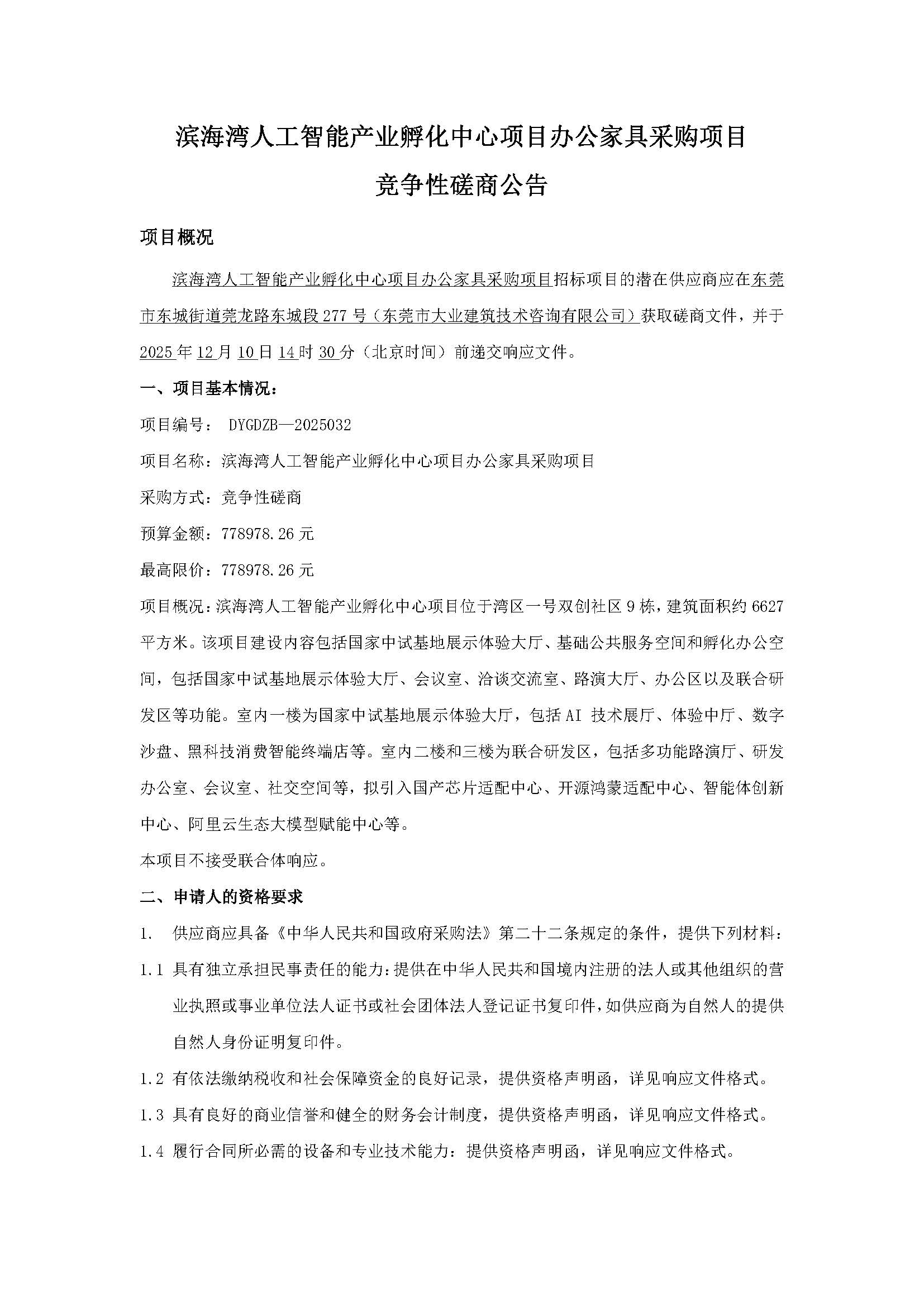 濱海灣人工智能產(chǎn)業(yè)孵化中心項(xiàng)目辦公家具采購(gòu)項(xiàng)目競(jìng)爭(zhēng)性磋商公告