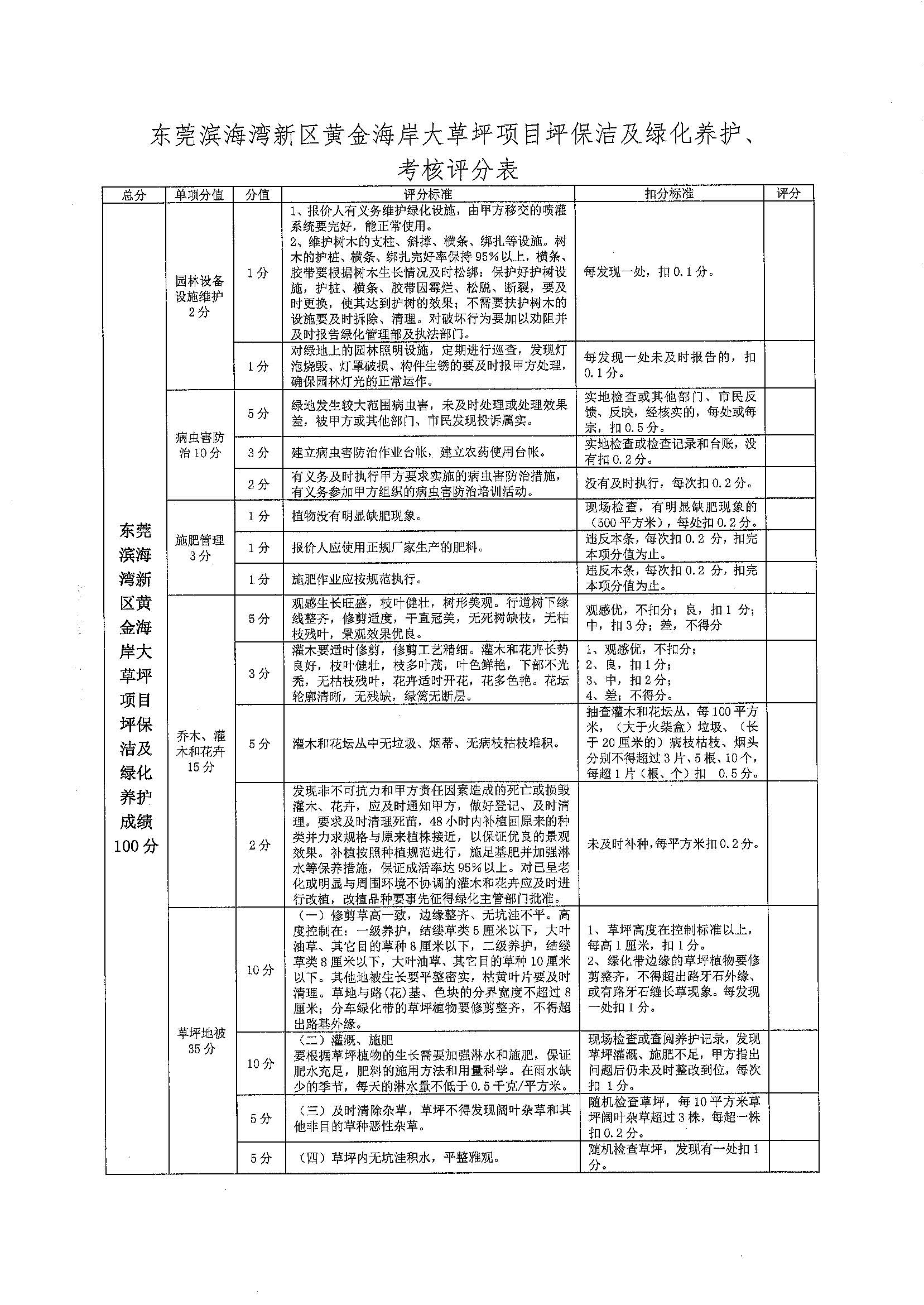 東莞濱海灣新區(qū)黃金海岸大草坪項目坪保潔及綠化養(yǎng)護(hù)服務(wù)報價文件