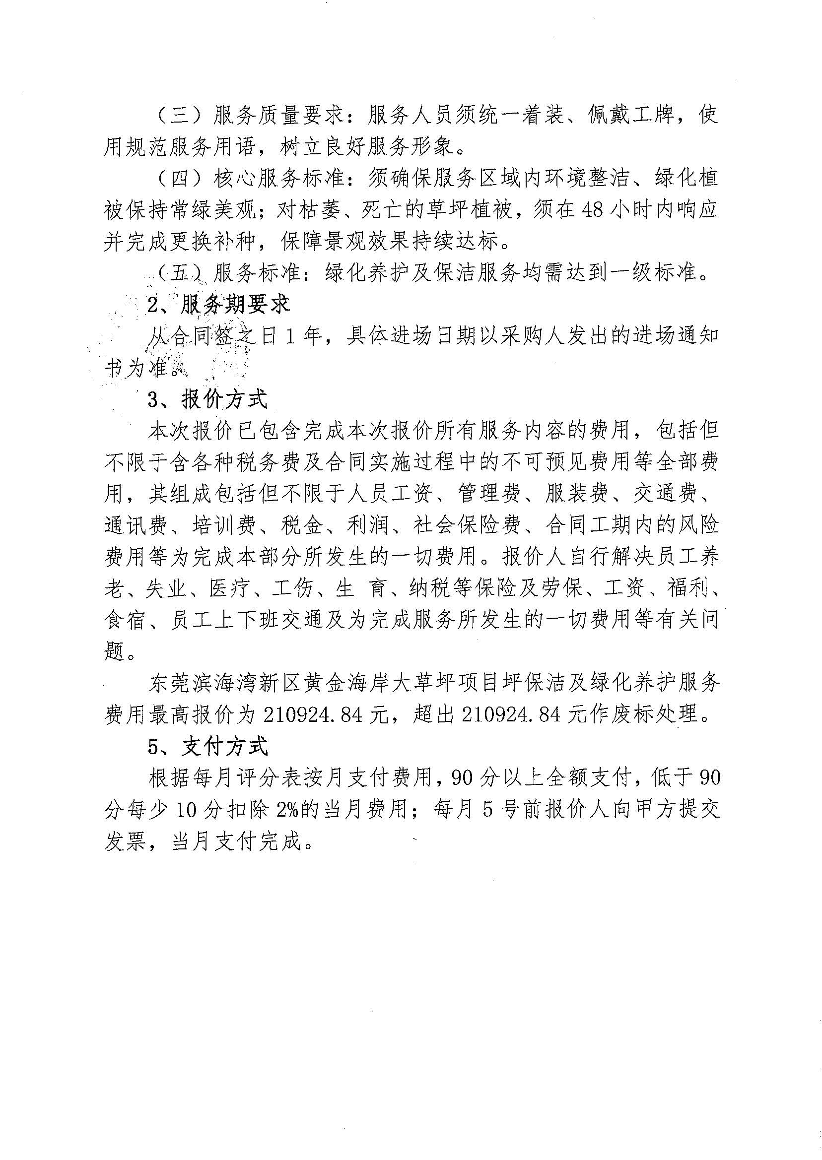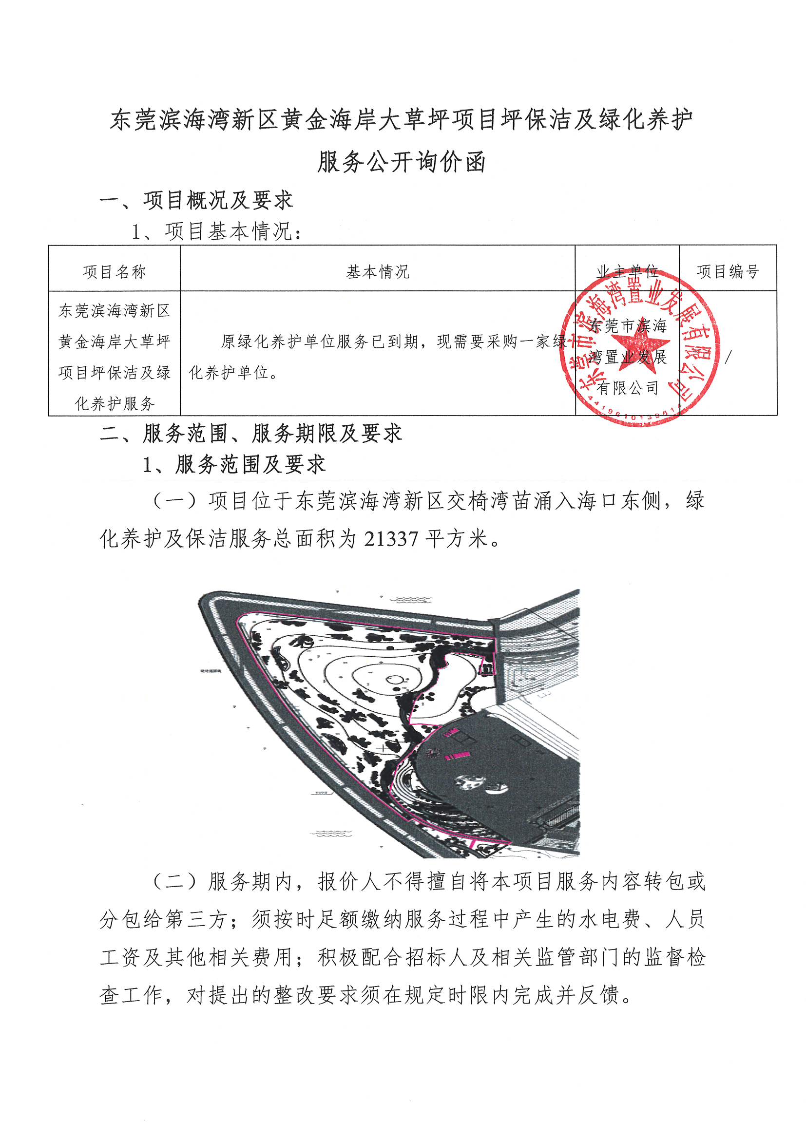東莞濱海灣新區(qū)黃金海岸大草坪項目坪保潔及綠化養(yǎng)護(hù)服務(wù)公開詢價函