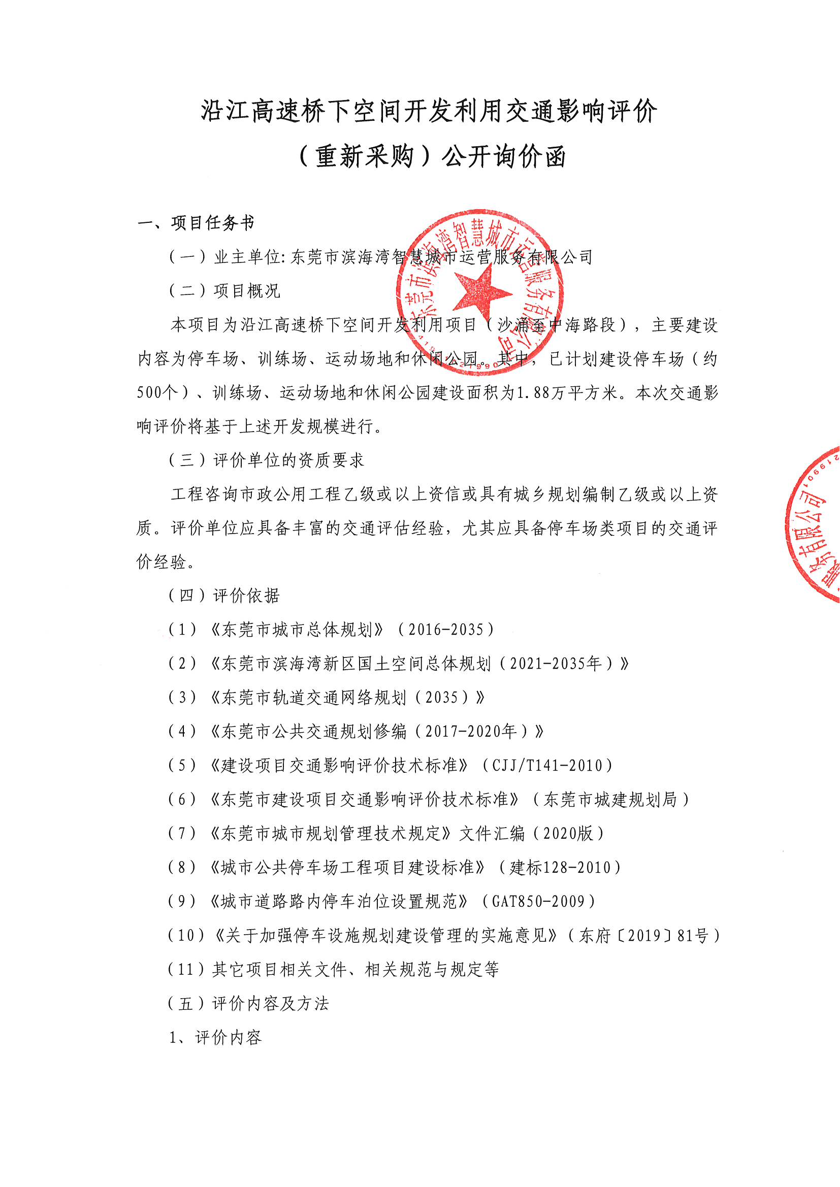 沿江高速橋下空間開發(fā)利用交通影響評(píng)價(jià) (重新采購(gòu))公開詢價(jià)函