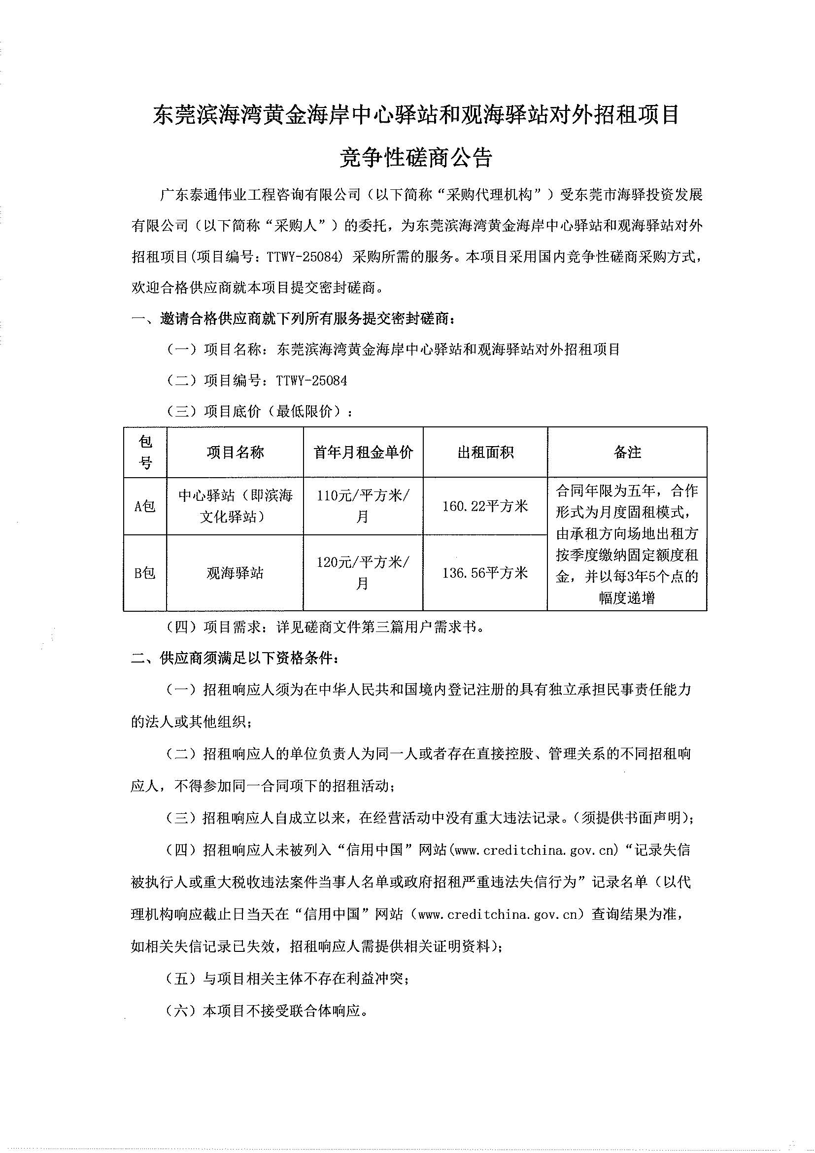 東莞濱海灣黃金海岸中心驛站和觀海驛站對(duì)外招租項(xiàng)目競(jìng)爭(zhēng)性磋商公告