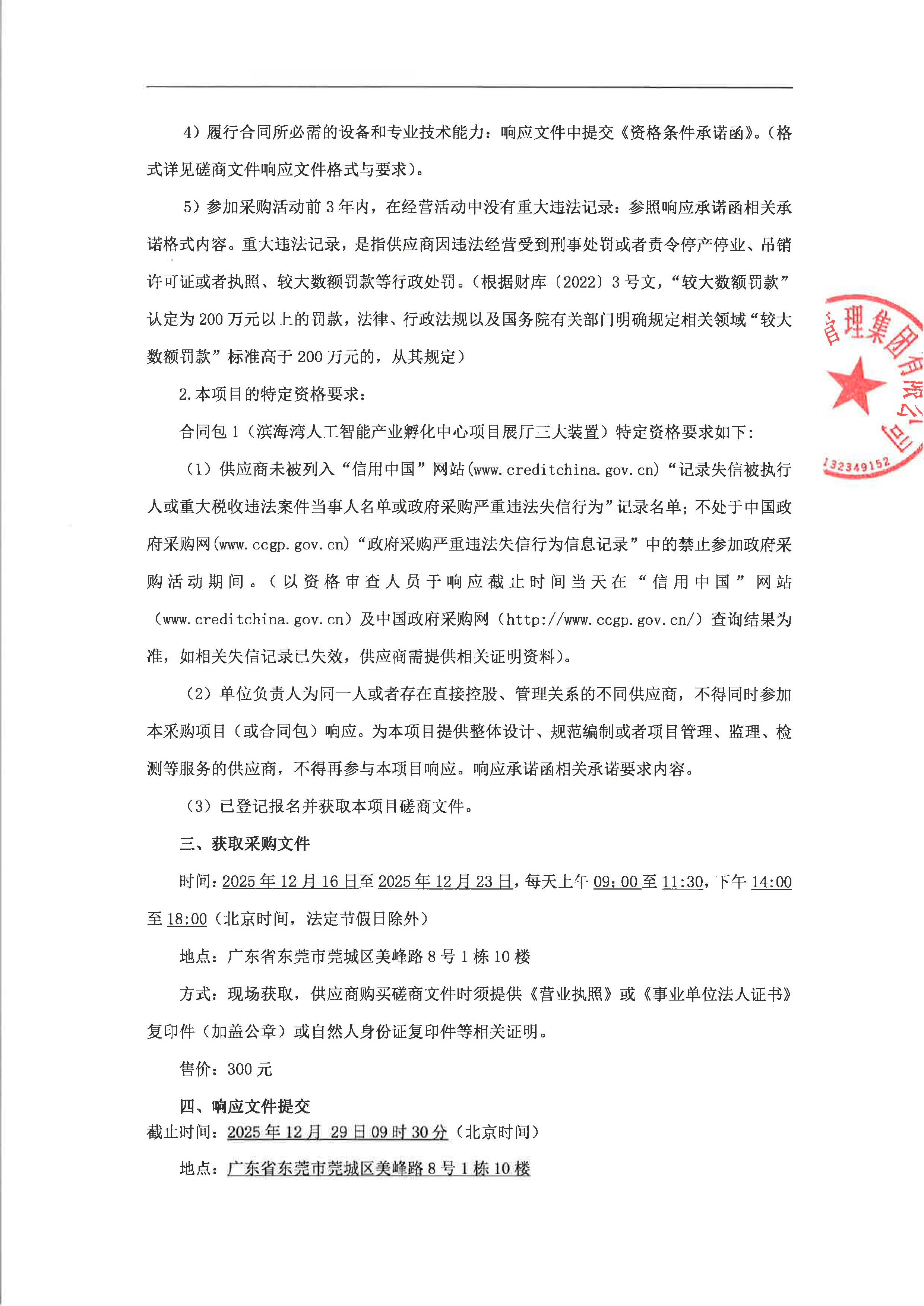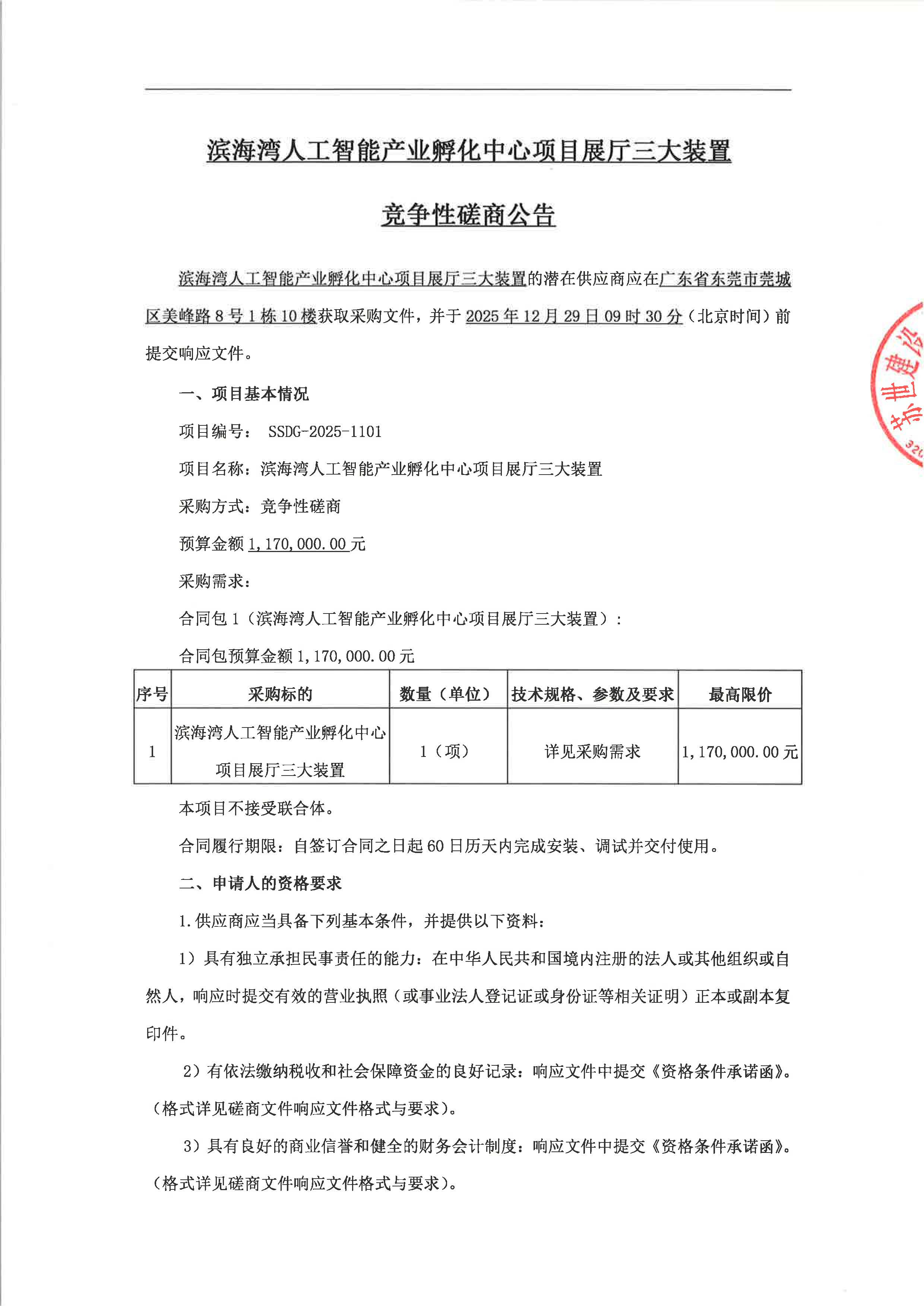 濱海灣人工智能產(chǎn)業(yè)孵化中心項目展廳三大裝置競爭性磋商公告