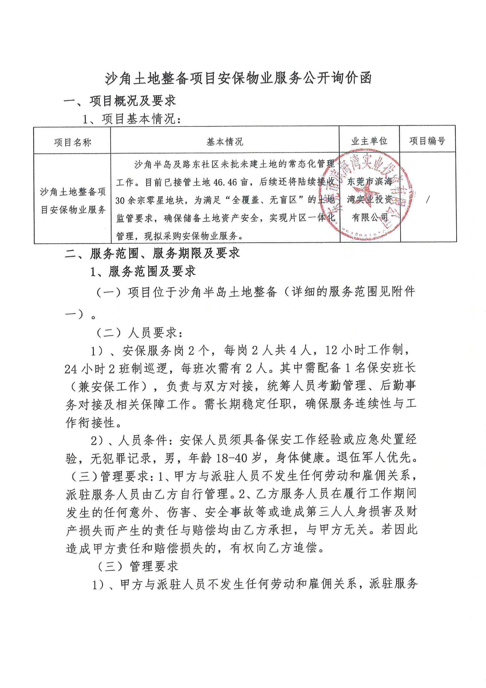 附件-沙角土地整備項(xiàng)目安保物業(yè)服務(wù)項(xiàng)目公開詢價(jià)函