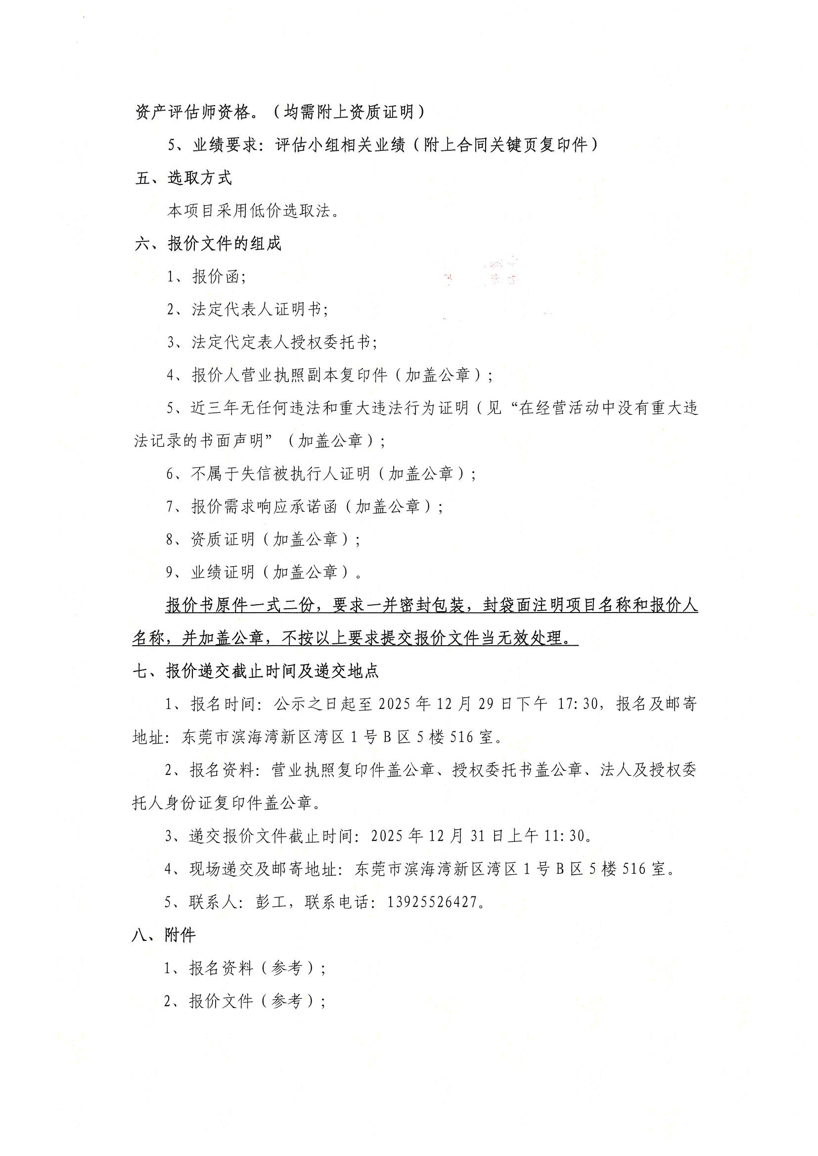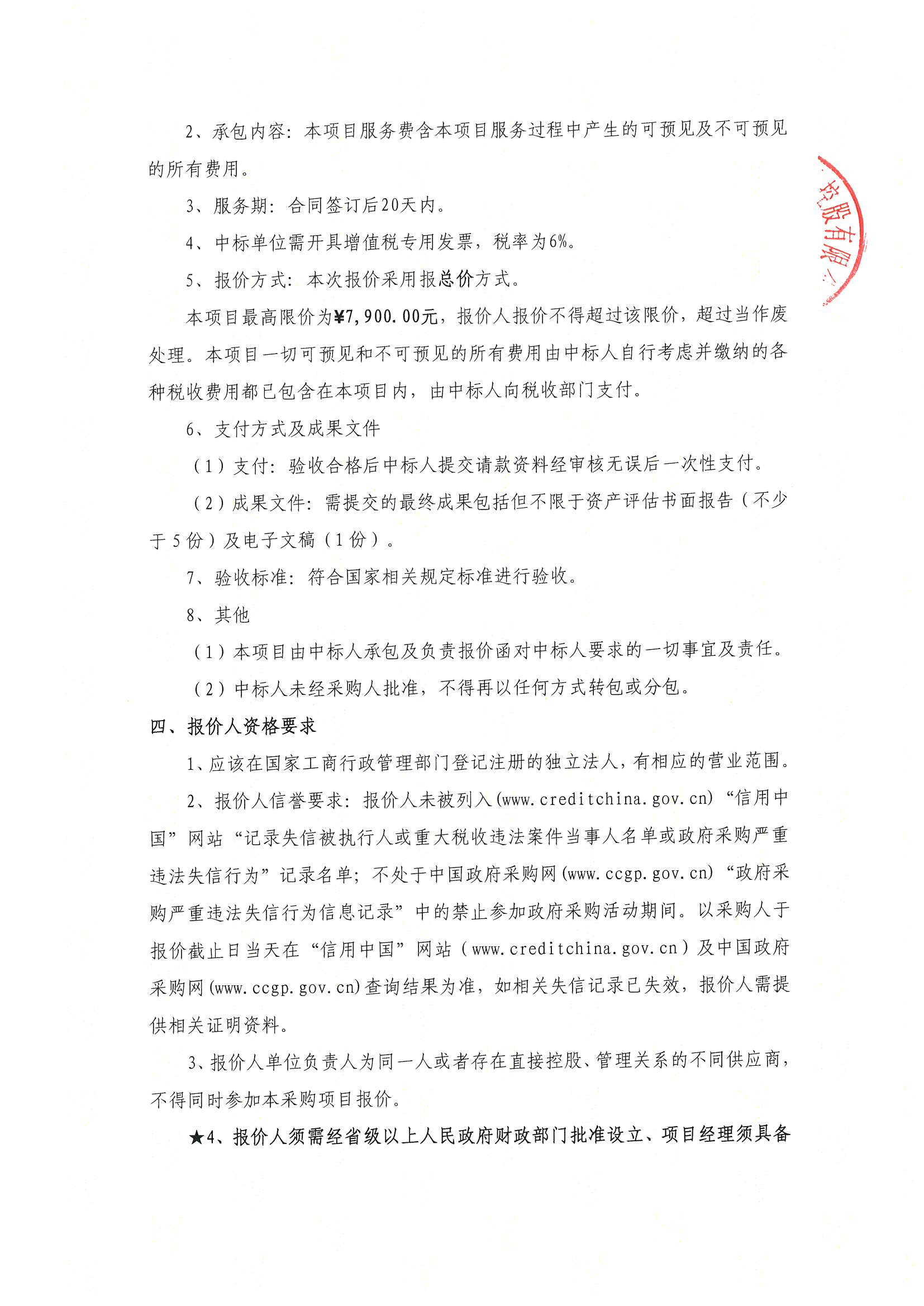 濱智城及控股公司處置一批閑置資產(chǎn)價值評估項目(重新采購)公開詢價函