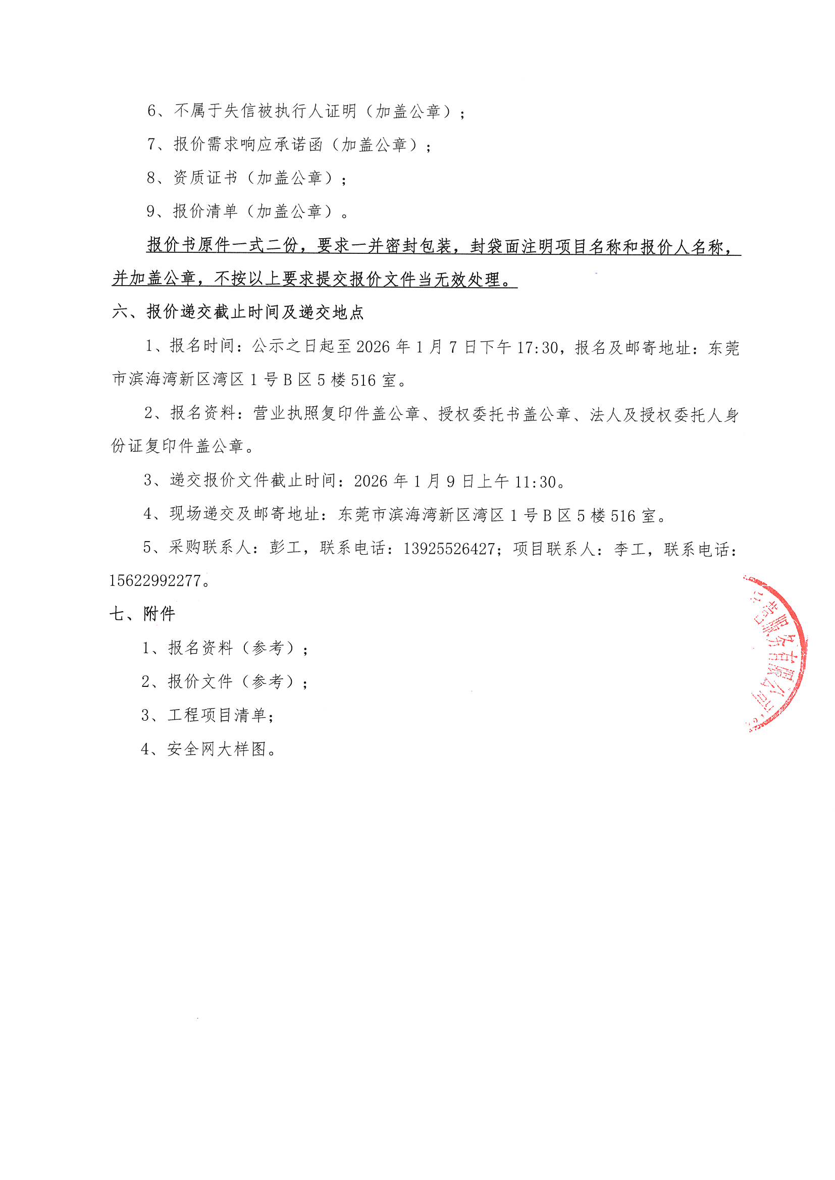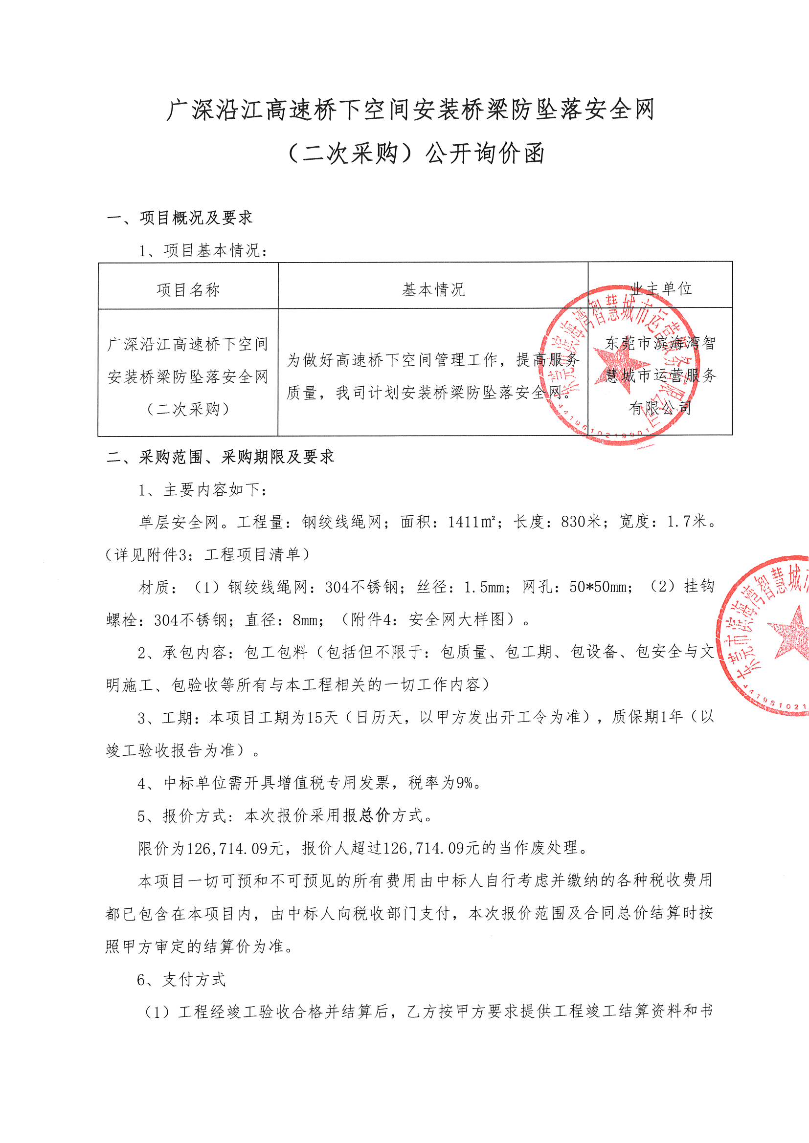廣深沿江高速橋下空間安裝橋梁防墜落安全網(wǎng)(二次采購)公開詢價函