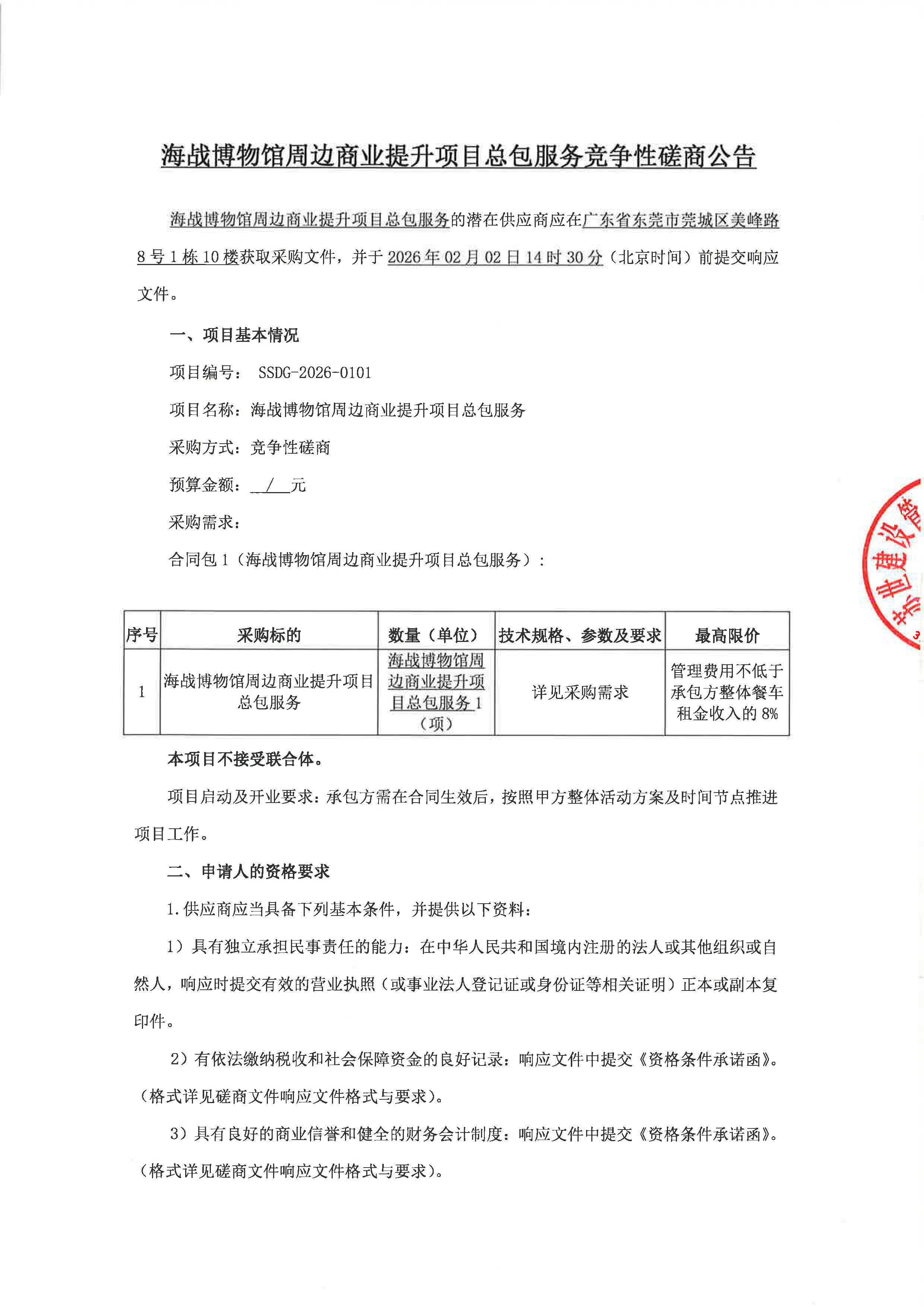 海戰(zhàn)博物館周邊商業(yè)提升項(xiàng)目總包服務(wù)競(jìng)爭(zhēng)性磋商公告