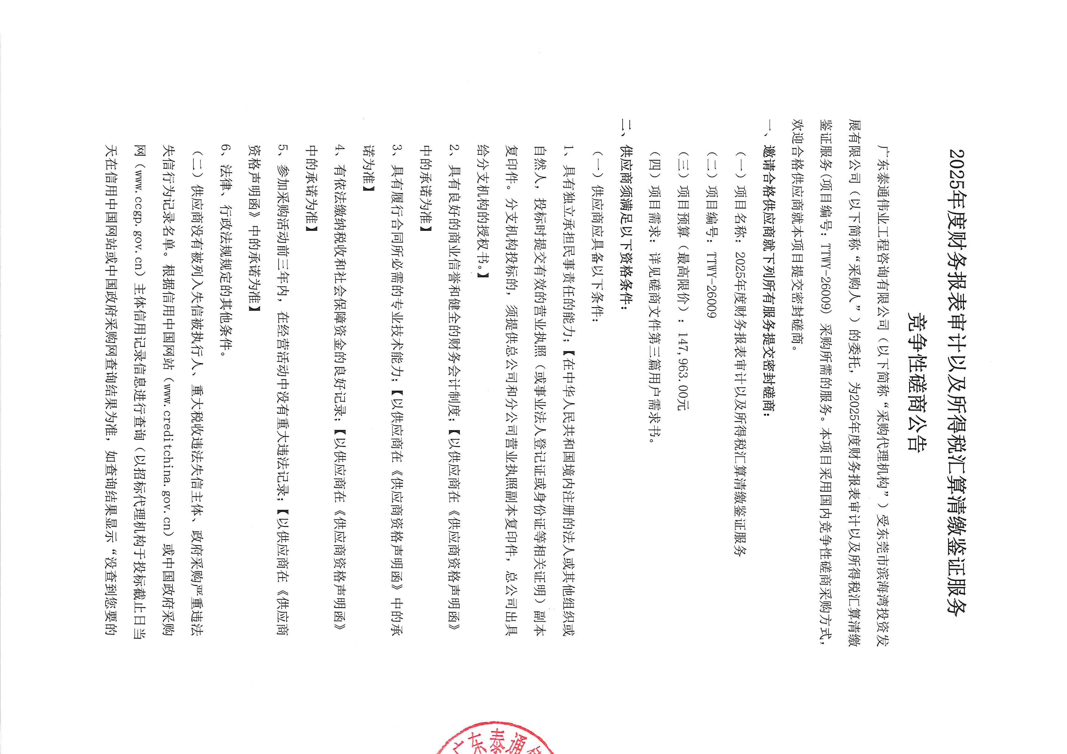 2025年度財務報表審計以及所得稅匯算清繳鑒證服務競爭性磋商公告