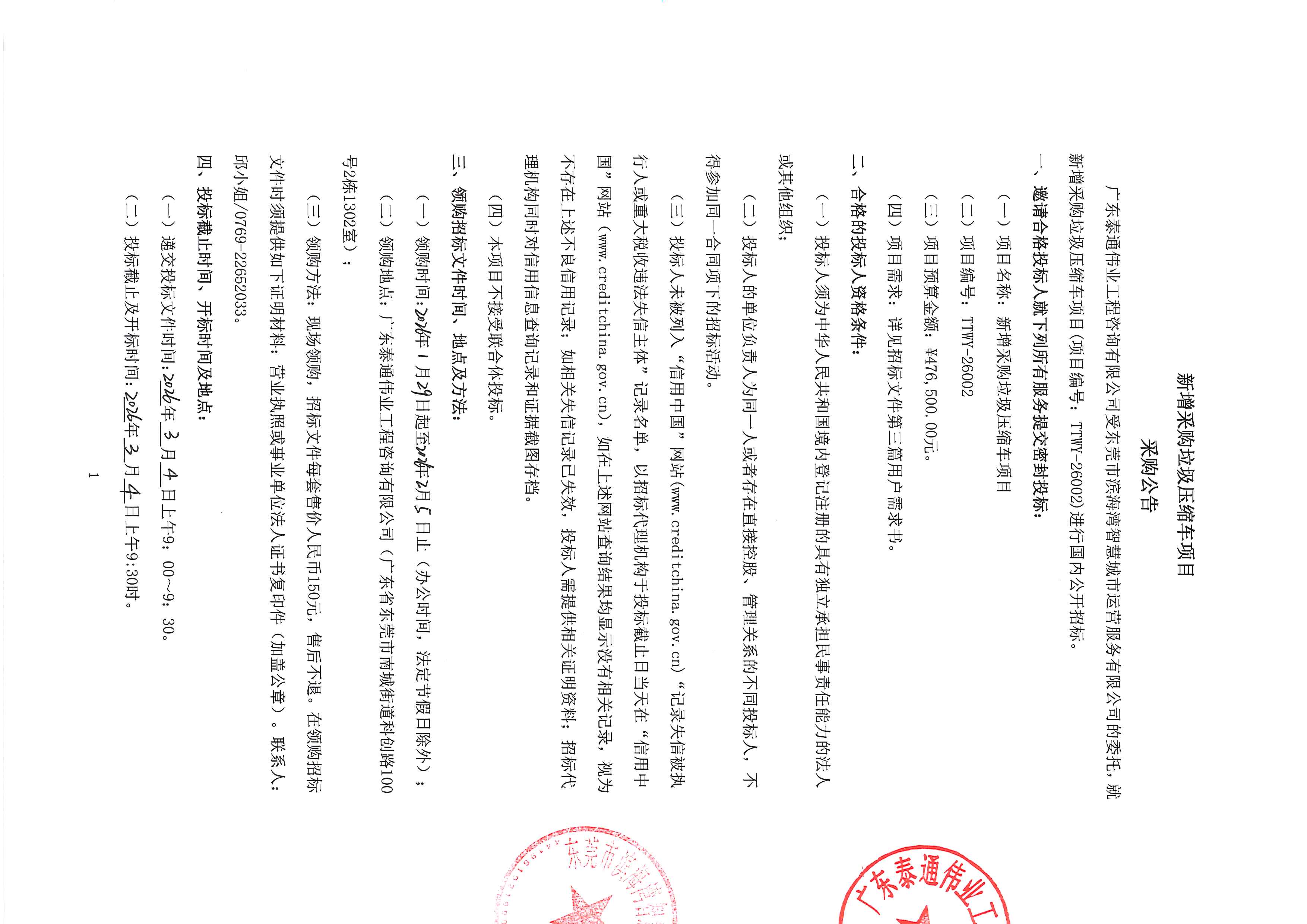 新增采購垃圾壓縮車項(xiàng)目采購公告