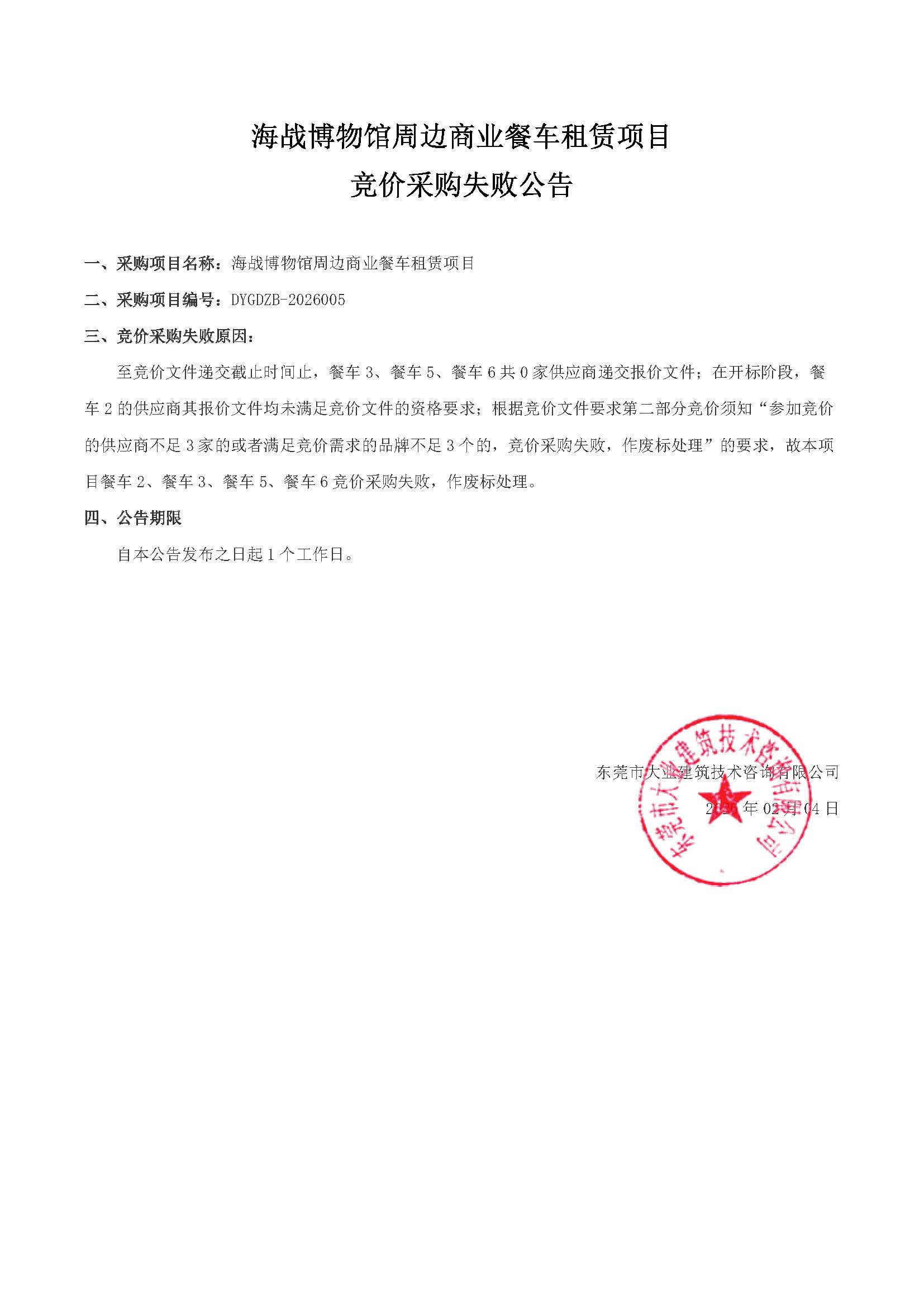 海戰(zhàn)博物館周邊商業(yè)餐車(chē)租賃項(xiàng)目競(jìng)價(jià)采購(gòu)失敗公告