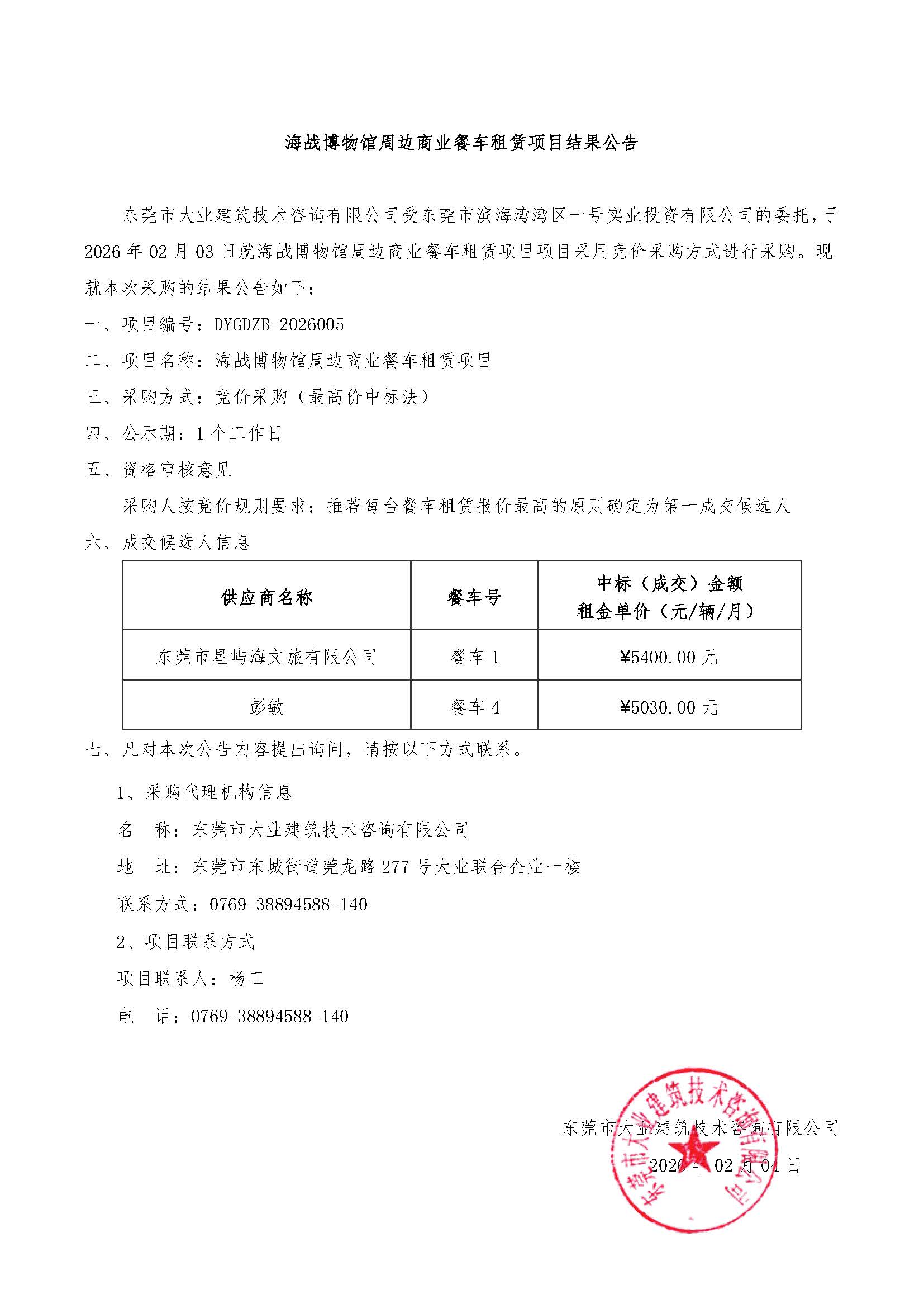 海戰(zhàn)博物館周邊商業(yè)餐車租賃項目結果公告