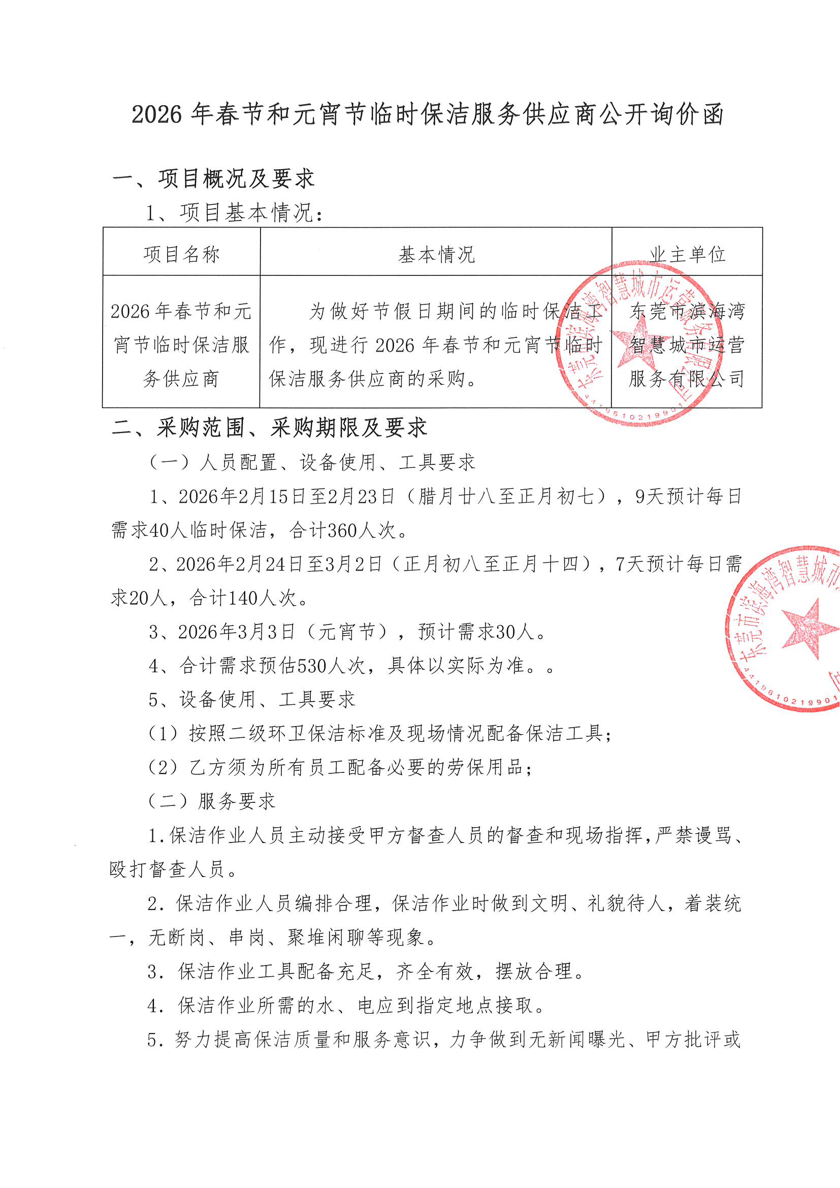 2026年春節(jié)和元宵節(jié)臨時(shí)保潔服務(wù)供應(yīng)商公開詢價(jià)函