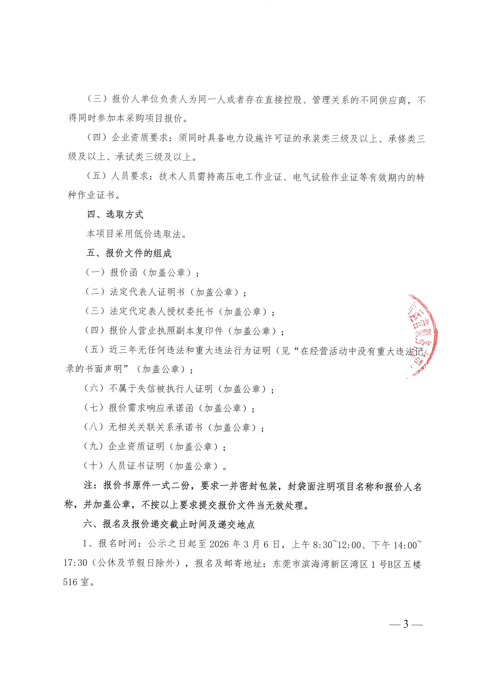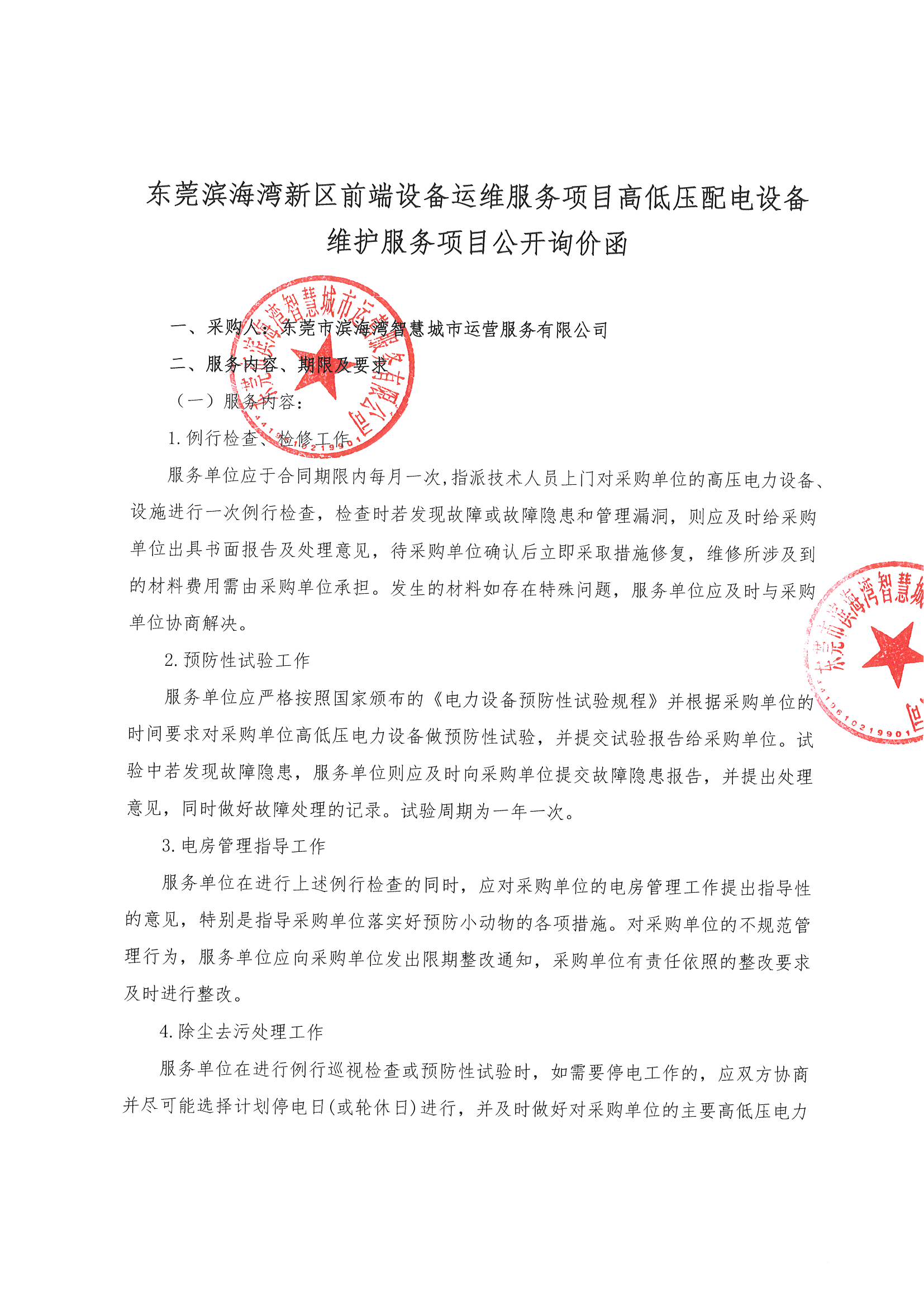 東莞濱海灣新區(qū)前端設(shè)備運維服務(wù)項目高低壓配電設(shè)備維護服務(wù)項目公開詢價函