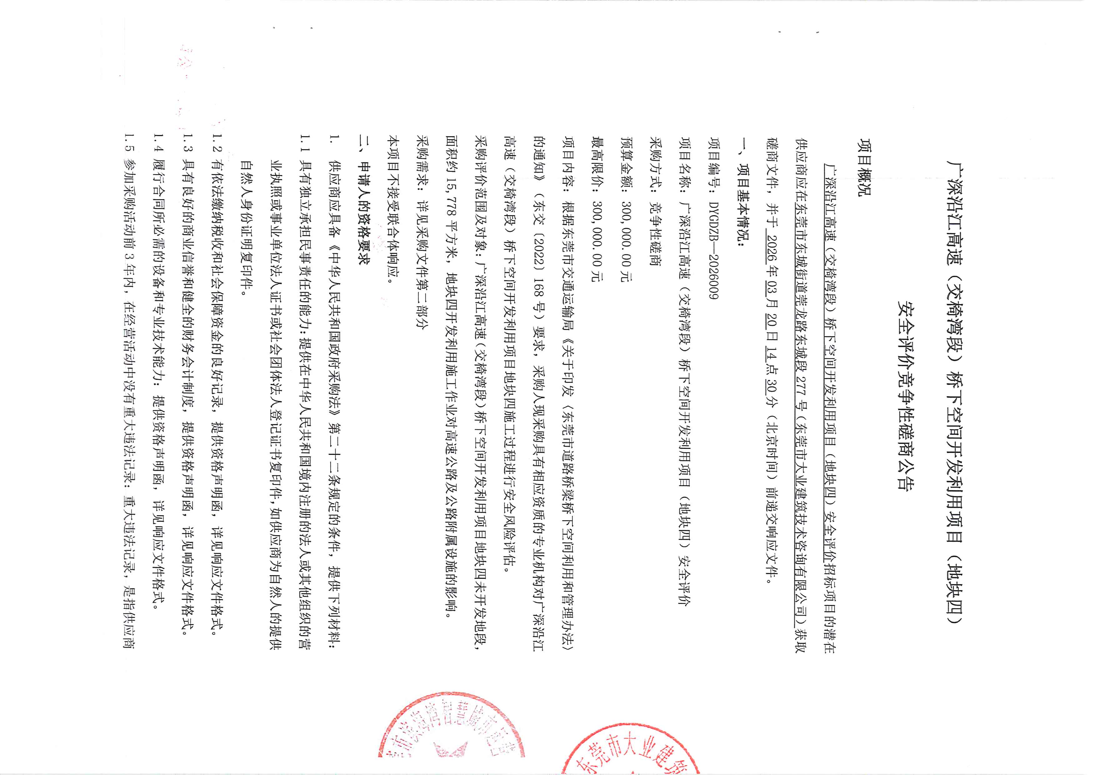 廣深沿江高速(交椅灣段)橋下空間開發(fā)利用項目(地塊四)安全評價競爭性磋商公告