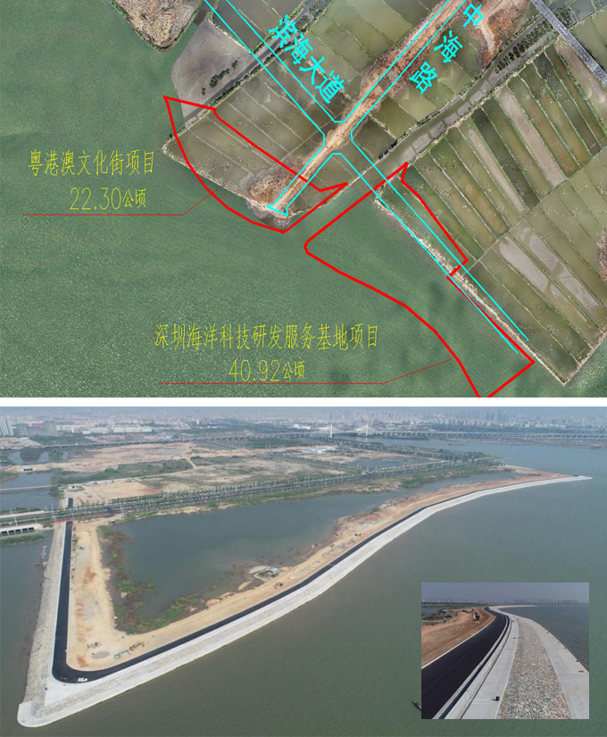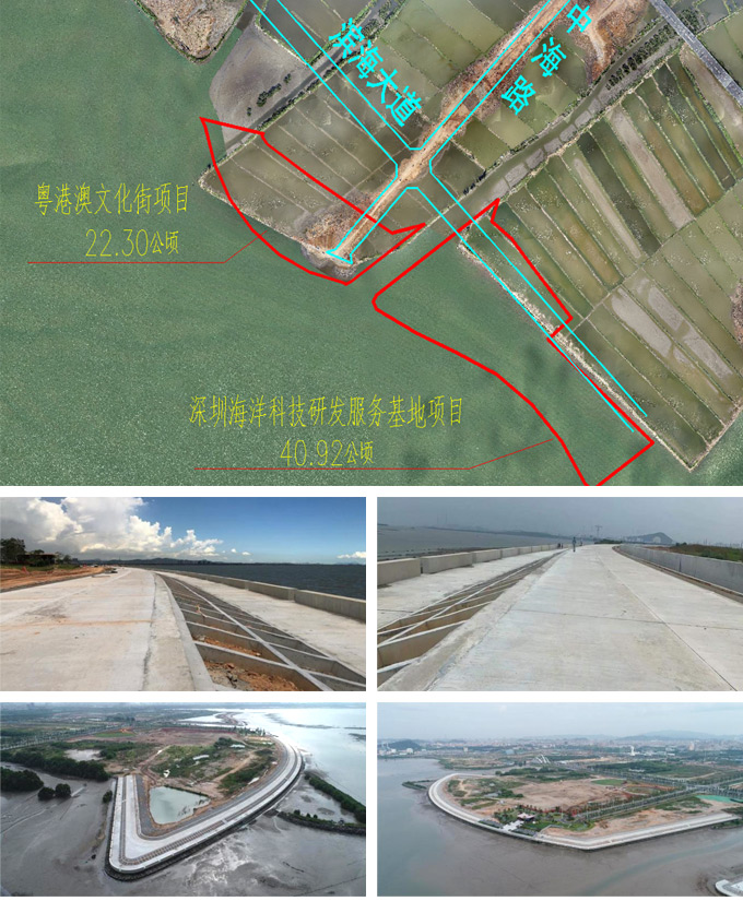 本項(xiàng)目位于濱海灣新區(qū)交椅灣板塊最南端靠海側(cè),往北連接新區(qū)及長安鎮(zhèn)陸域,東西介于龍涌和茅洲河之間,區(qū)域平面呈凹邊矩形布置,為新建一級(jí)堤防工程,圍填海面積約40.92公頃(613.8 畝),形成陸域面積約35.99公頃(539.85 畝),共有半直立式海堤約1.93公里,總投資4.1億,合同價(jià)為1.54億元。2017年8月獲得主管部門東莞市水務(wù)局工程實(shí)施許可批復(fù),2017年9月獲得省自然資源廳(原省海洋與漁業(yè)廳)海域使用權(quán)證,2018年4月通過公開招標(biāo)確定中標(biāo)施工單位中交第四航務(wù)工程局有限公司、中國葛洲壩集團(tuán)路橋工程有限公司(原中國葛洲壩集團(tuán)第五工程有限公司)聯(lián)合體,2018年11月獲得灘涂開發(fā)利用方案批復(fù),2018年11月開工建設(shè),2021年10月21日完工,2022年7月14日完成竣工驗(yàn)收,被評(píng)定為優(yōu)良工程。