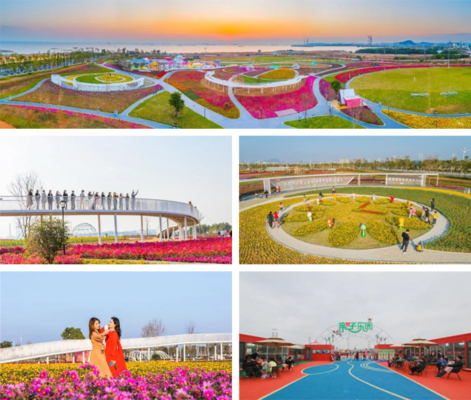 “濱海灣·花海里”花卉公園位于苗涌以東、濱海灣大道以南、龍涌以西、濱海驛站以北。花海里總開放面積約10.9萬平方米,相應(yīng)服務(wù)配套大型停車場?;ê@镆?ldquo;星空幻象·海濱畫鏡”為設(shè)計(jì)理念,分為“春·風(fēng)鈴花谷、夏·草?;ㄌ?、秋·秋月花語、冬·雪之秘境”四大主題分區(qū)以及十二生肖花鐘、121米空中廊橋和兒童無動(dòng)力游樂園(花海里親子樂園)等網(wǎng)紅打卡點(diǎn)。